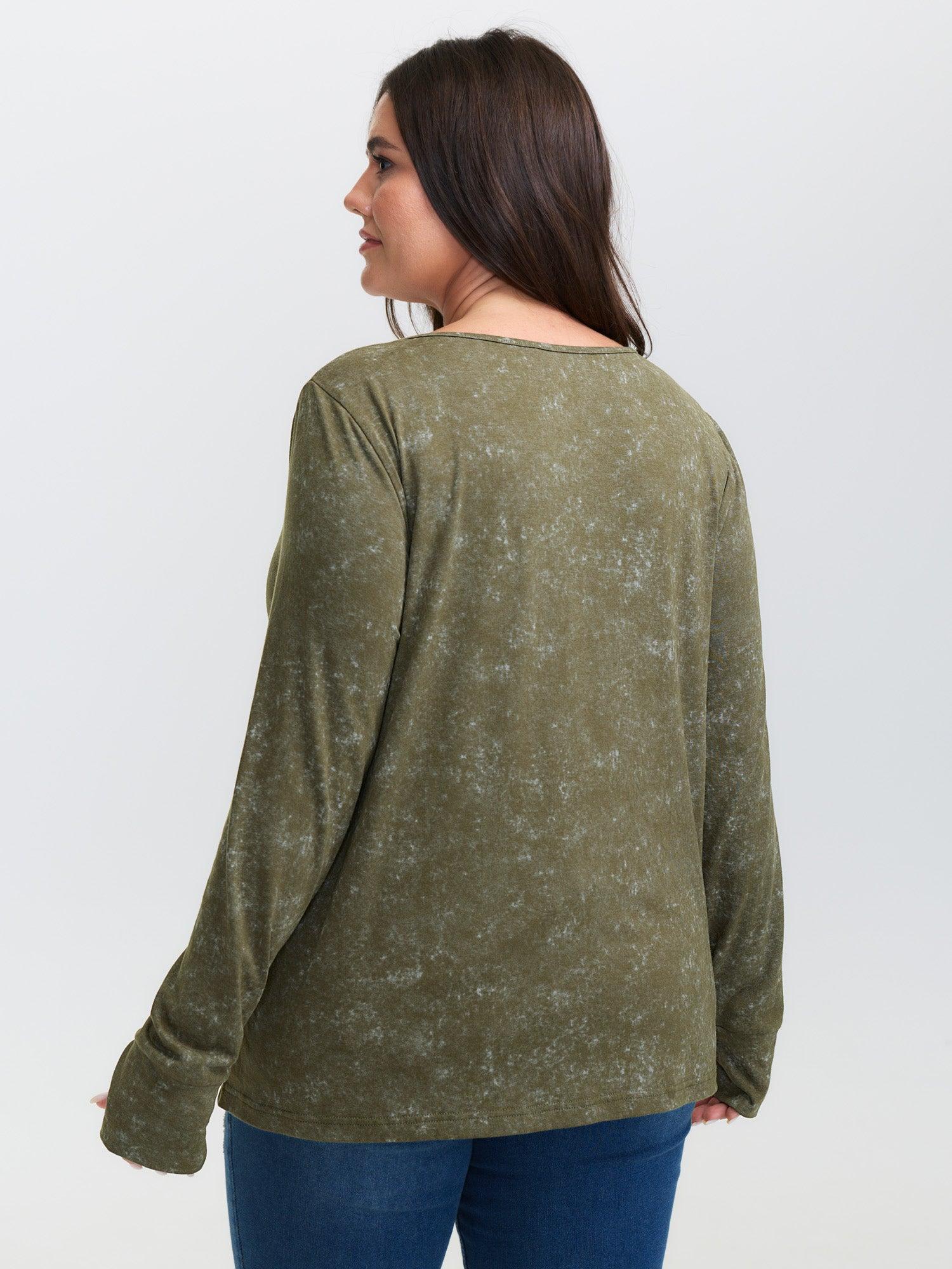 Snowflake Effect Button Detail T-Shirt Female