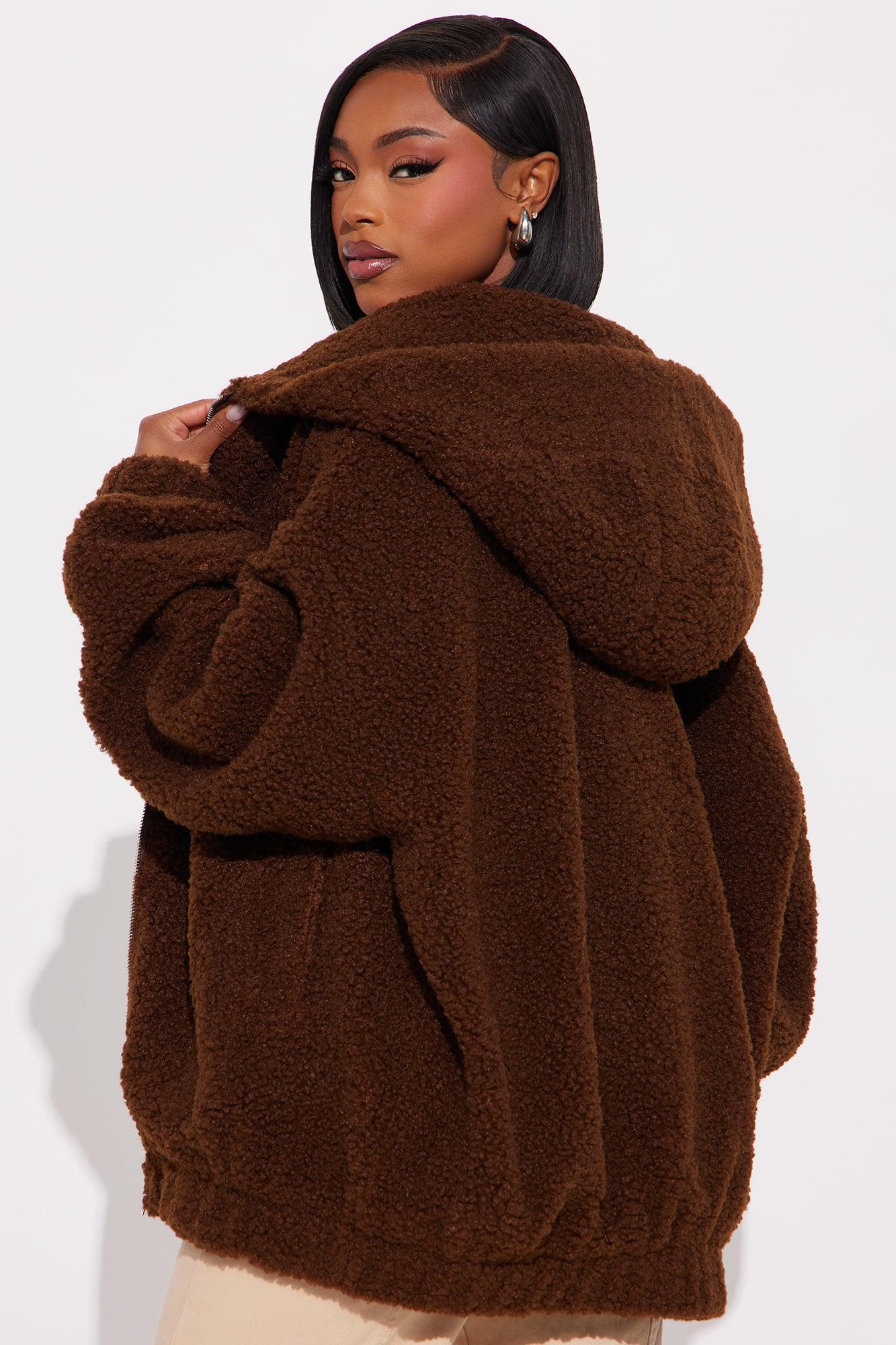 Snuggle Up Hooded Sherpa Coat - Brown Female