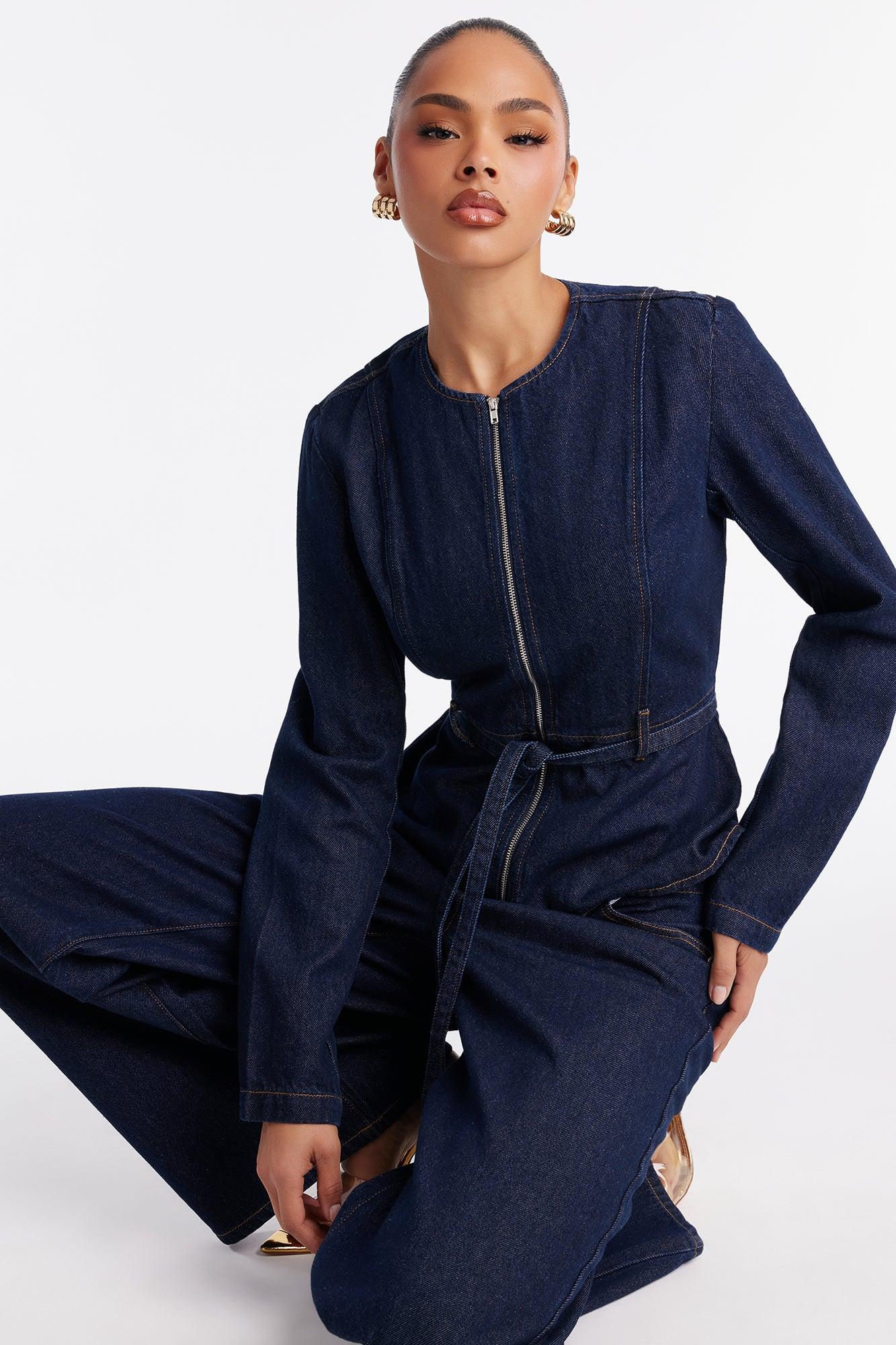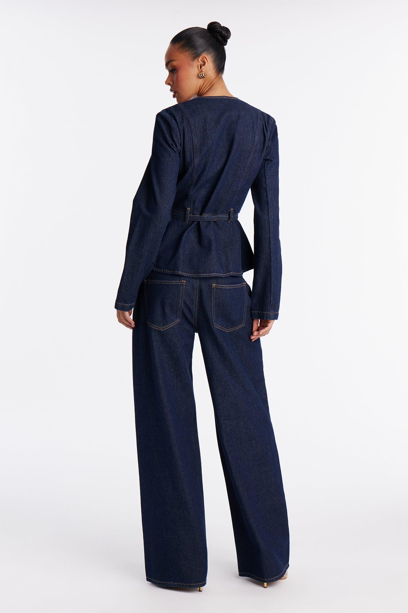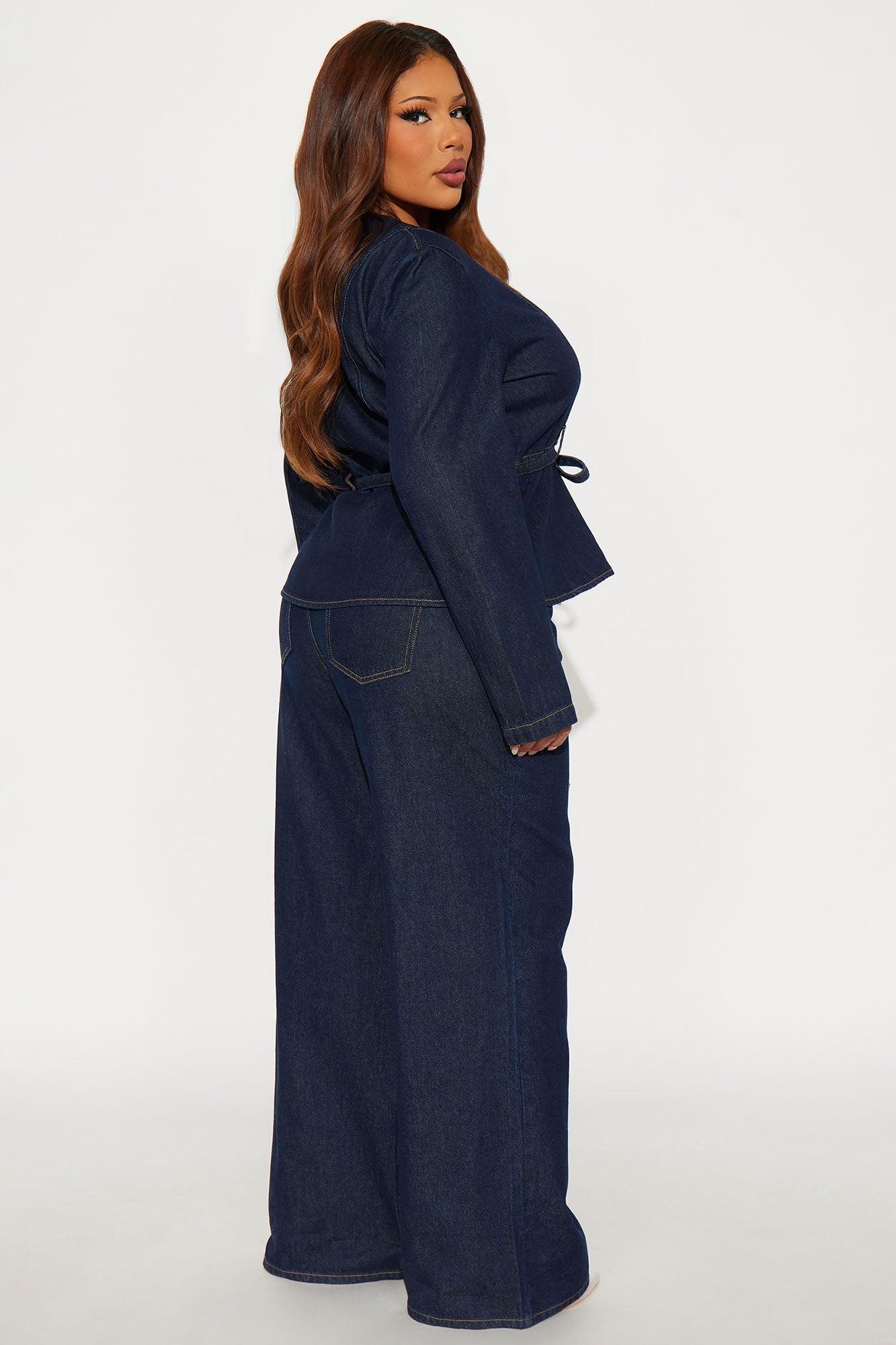 Available In Dark Wash. 2 Piece Ensemble High Neck Top And Wide Leg Pant Set Non-stretch 33" Inseam Zip-Front Top Drawstring Waistband Disclaimer: Due To The Specialized Wash, Each Garment Is Unique. Self: 100% Cotton Imported California Proposition 65WARNING: Cancer and Reproductive Harm - www.P65Warnings.ca.gov.