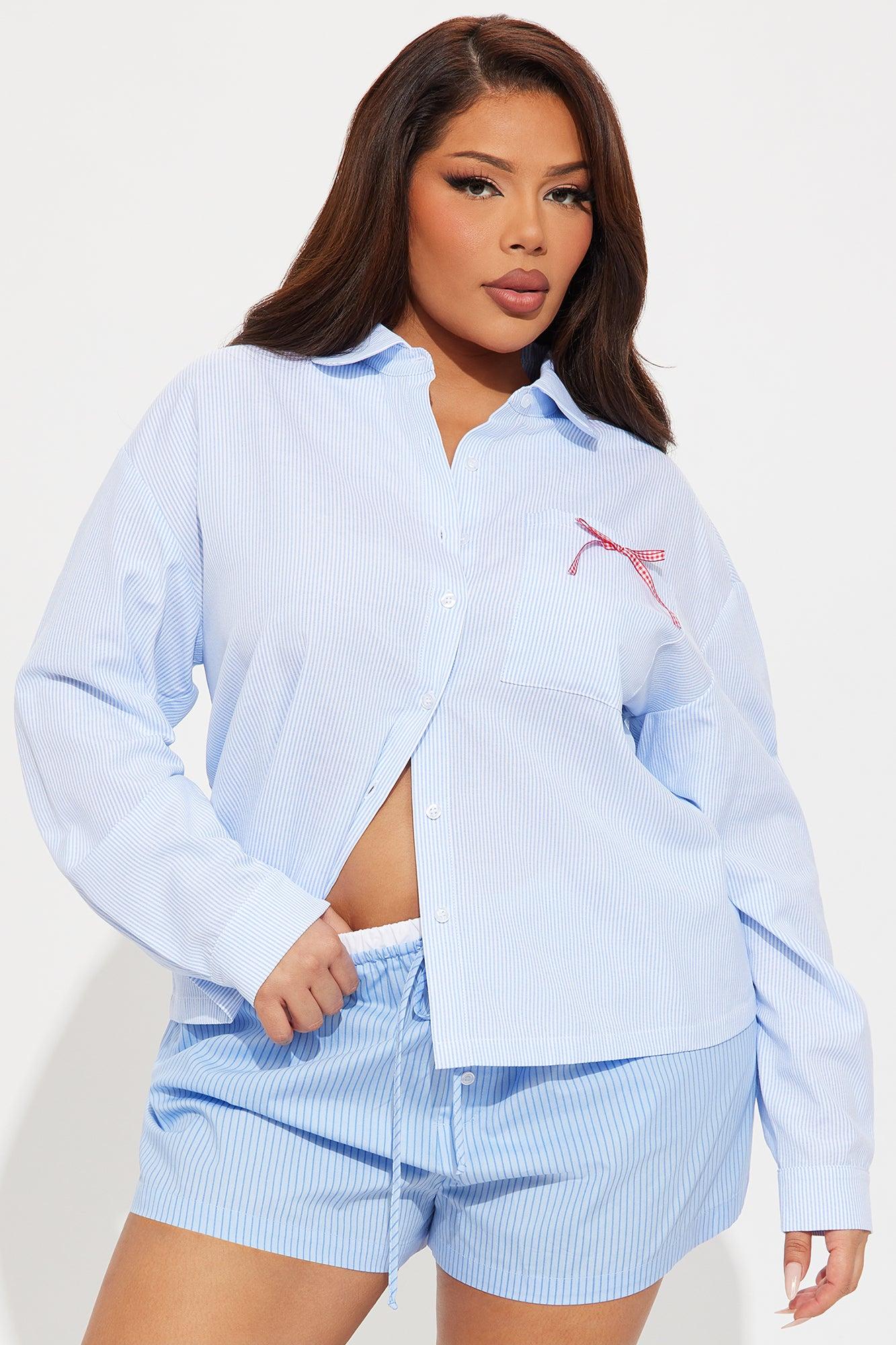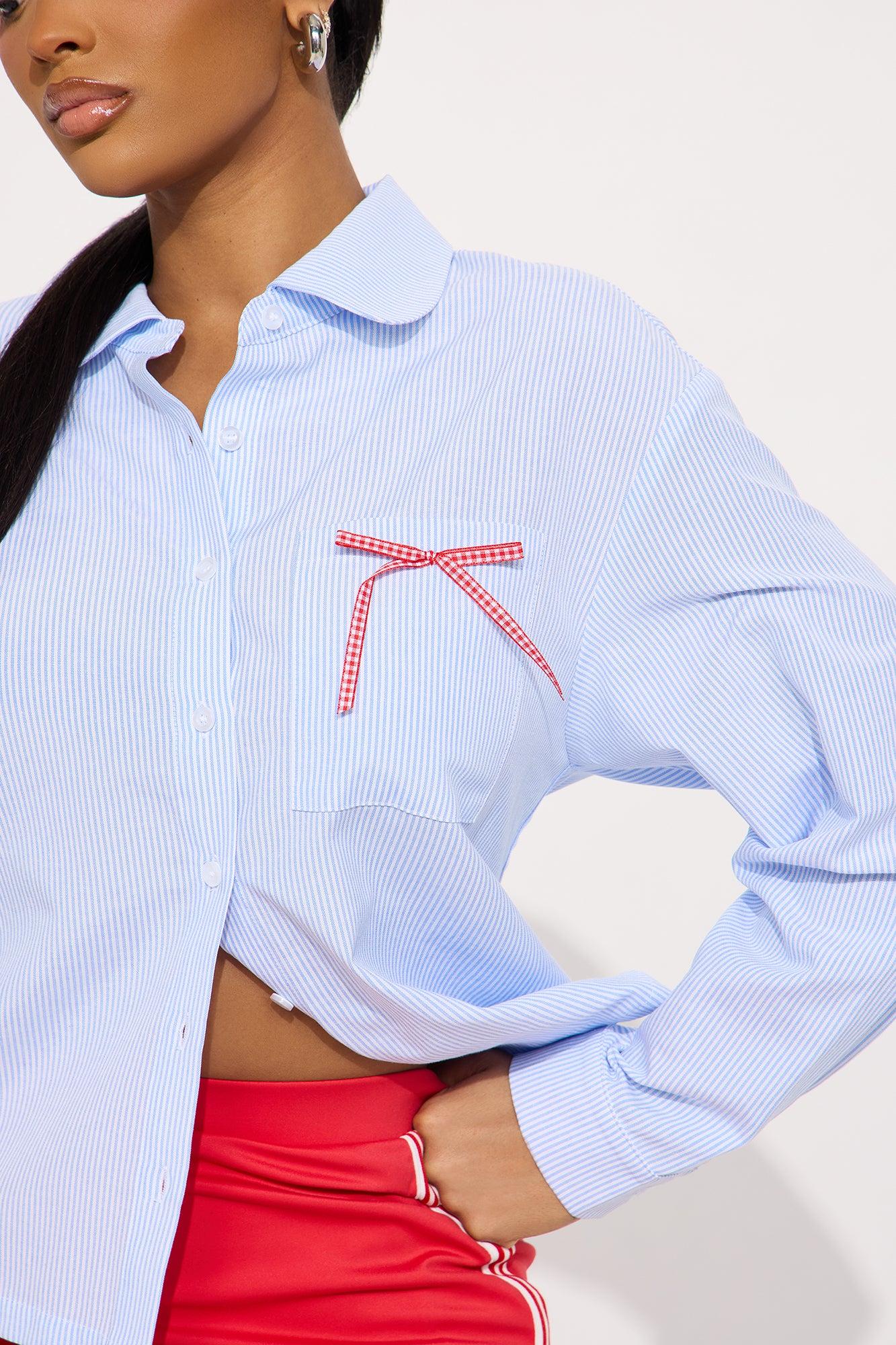 So Cutesy Long Sleeve Striped Shirt - Blue/combo