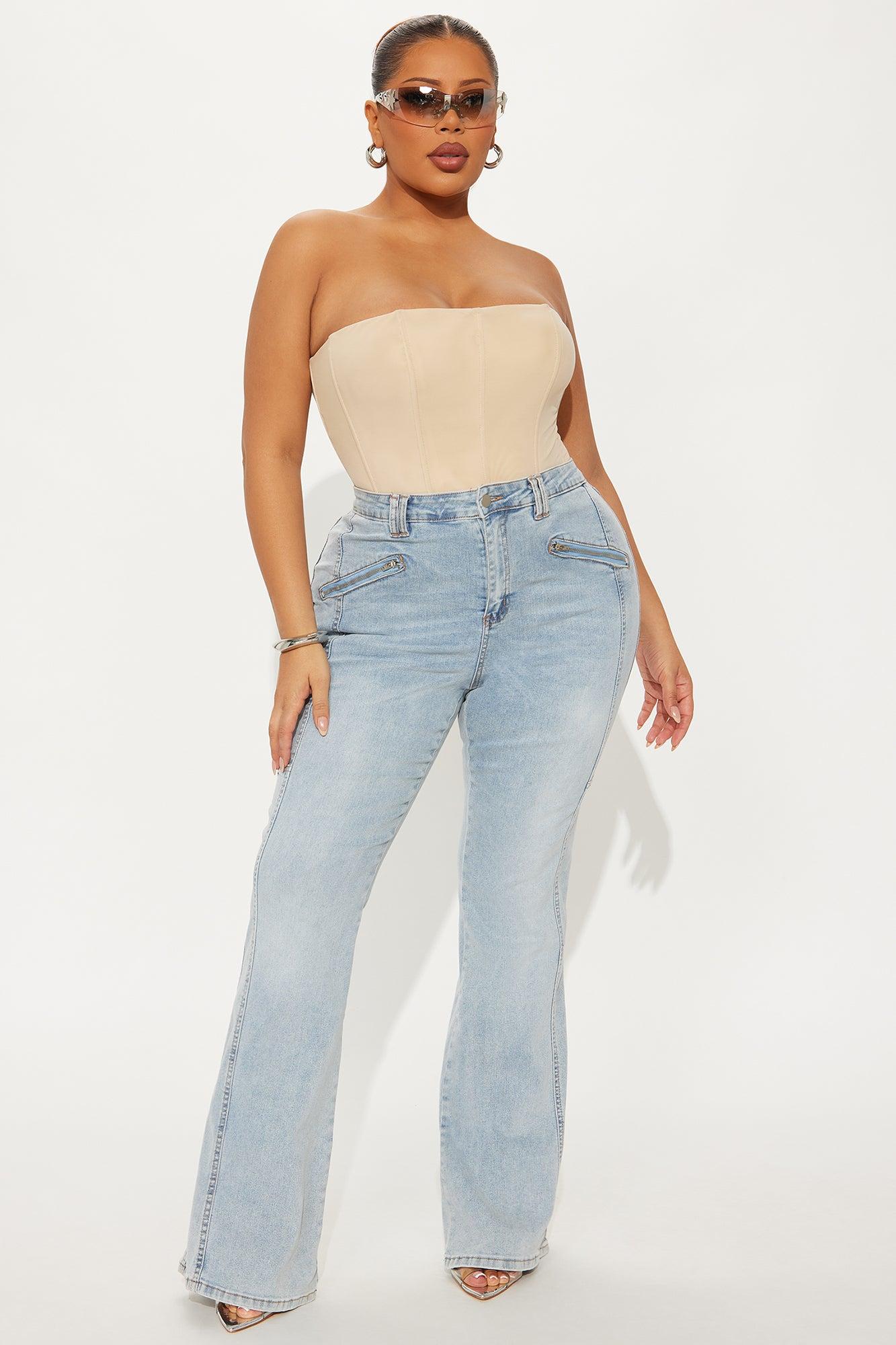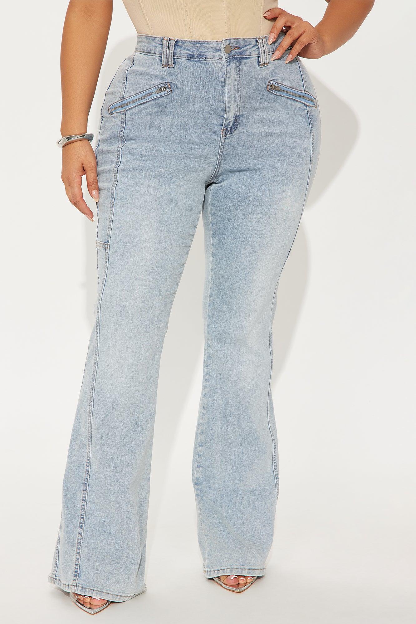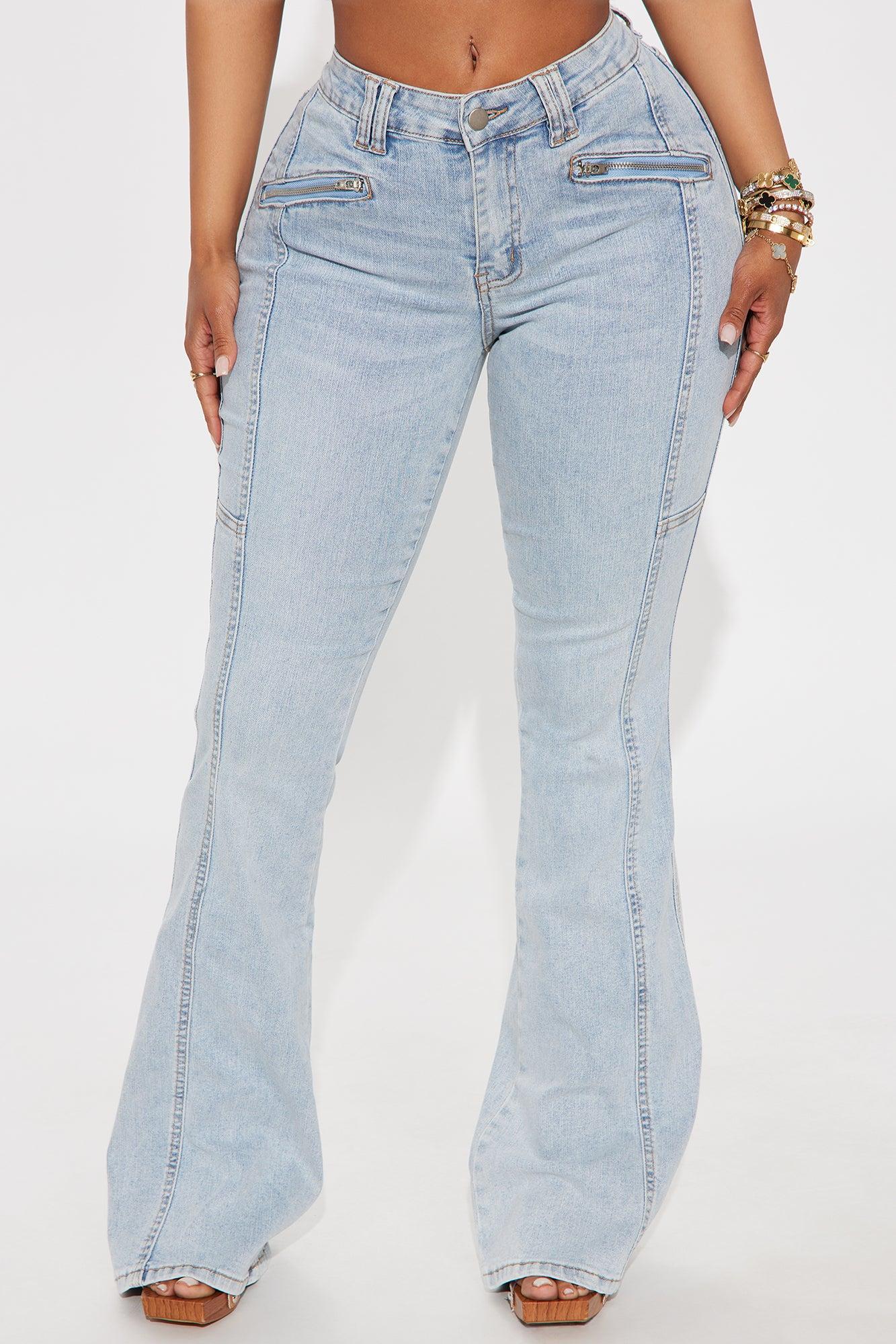 Available In Light Wash. Flare Jean Medium Stretch Zipper Pockets Back Pockets Double Belt Loops Seaming 10" Rise 34" Inseam Disclaimer: Due To The Specialized Wash Process, Each Garment Is Unique. 61% Cotton 25% Polyester 12% Rayon 2% Spandex Imported