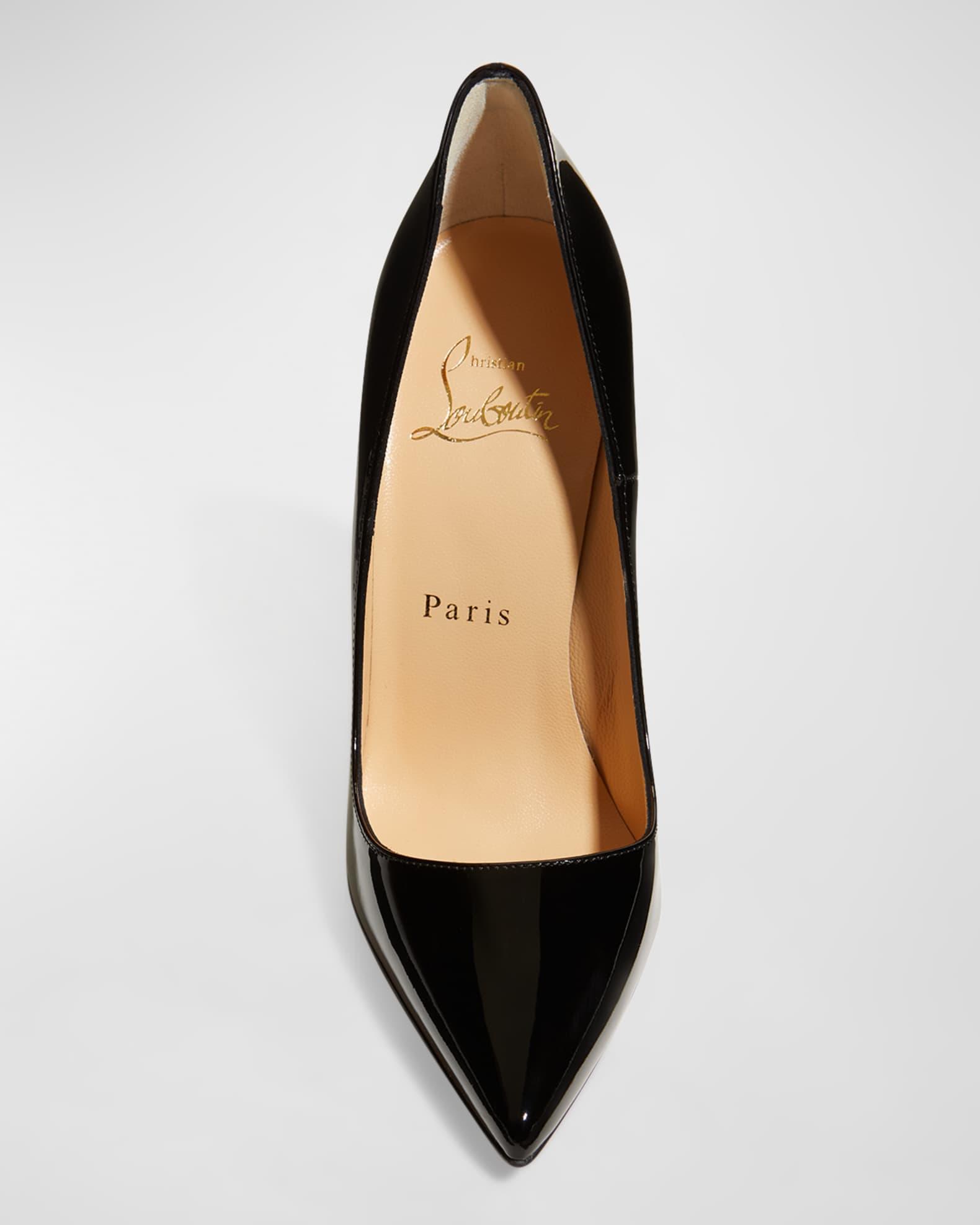 Pointedly potent, the Christian Louboutin "So Kate" pumps propel looks in lustrous patent leather 4 3/4" covered heel Pointed toe; single sole. Low-cut vamp visually lengthens legs Creamy leather lining and footbed Signature red leather outsole Made in Italy Size Note: Items runs small, consider ordering a size up.