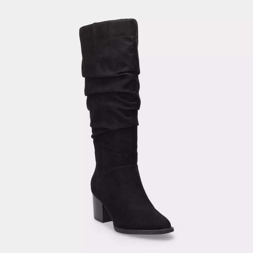 Step into style and comfort with SO® boots that effortlessly elevate any outfit. Their chic block heel and tall scrunch design bring a playful yet sophisticated flair, making you feel fabulous whether you're out with friends or at a cozy gathering. Click this FOOTWEAR GUIDE to find the perfect fit and more! - https://www.kohls.com/feature/shoesizeguide.jsp. FEATURES: Slouchy design for a relaxed look, Chunky heel for added stability, Knee-high length for stylish coverage. FIT & SIZE: Knee high boot shaft detail, Boot shaft height: 14.3 in., Boot shaft circumference: 16.5 in. DETAILS: Zipper closure, Flex groove outsole, Almond toe, Heel height: 2.44", Imported. MATERIAL & CARE: Microsuede upper, TPR and fabric outsole, Bontex midsole, Tricot lining, Polyurethane footbed, Spot clean. Size: 8.5. Color: Black. Gender: female. Age Group: adult. Material: OTHER MATERIAL.