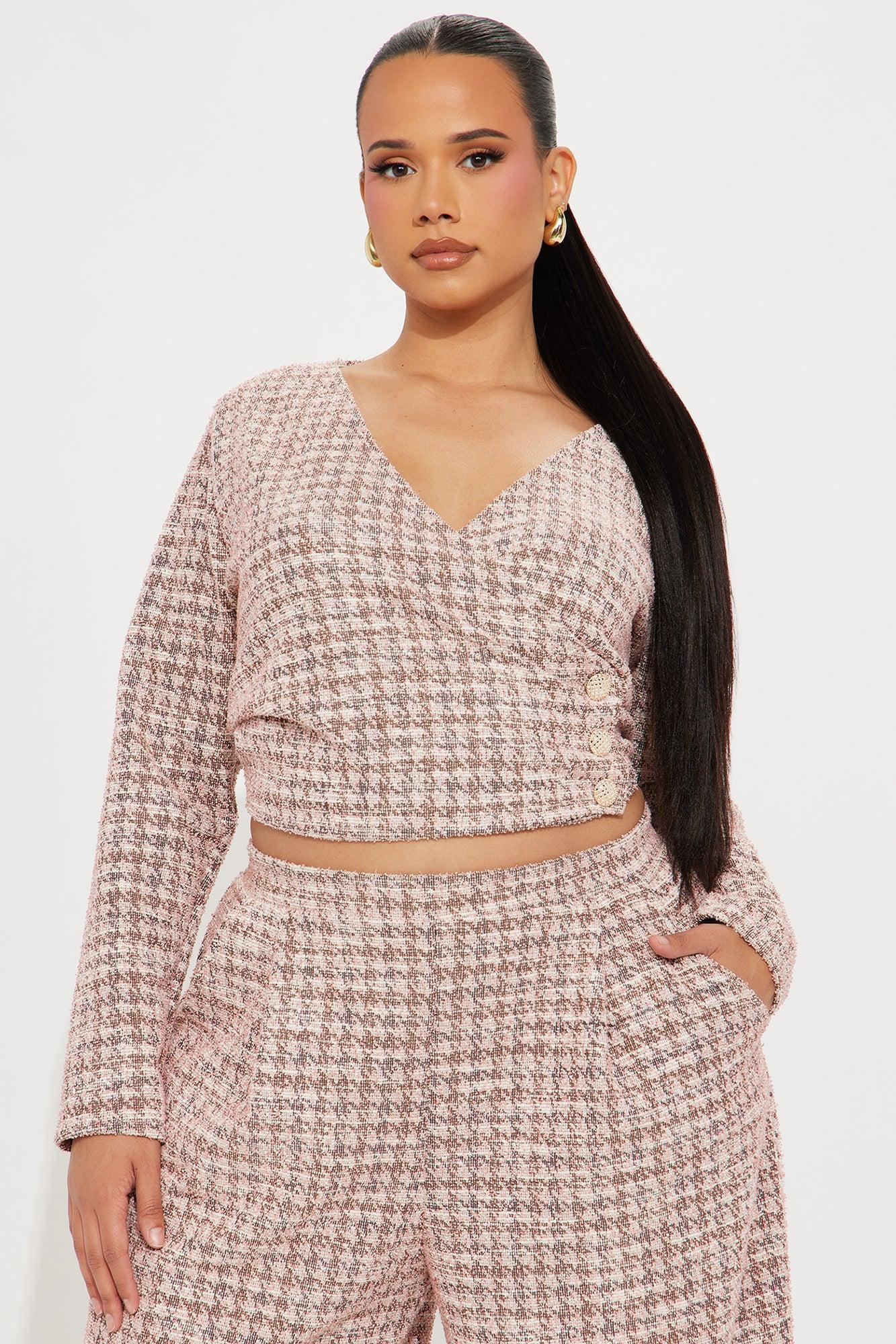 So Prestige Knit Tweed Pant Set - Pink