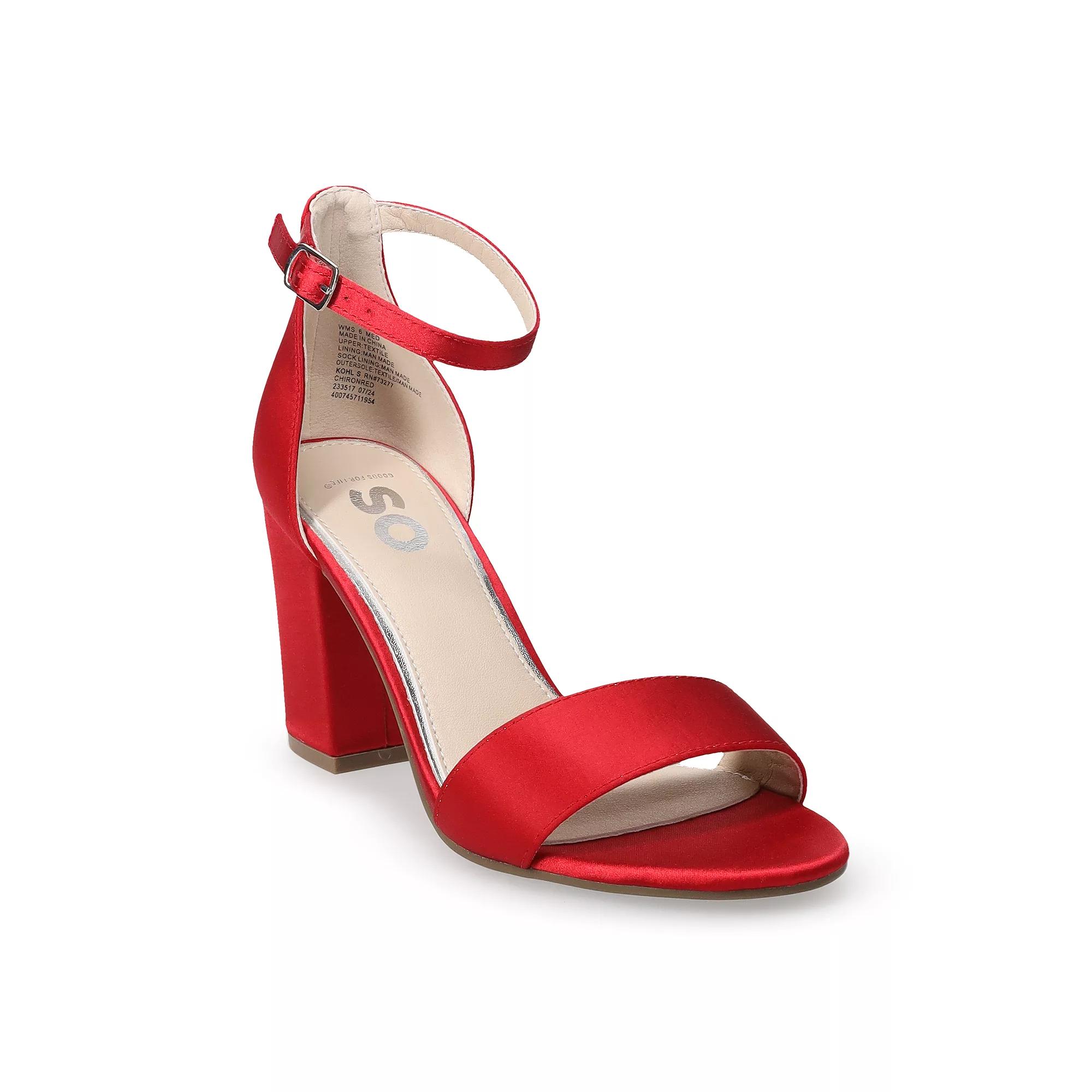 Elevate your style with these SO womens heeled dress sandals. Click this FOOTWEAR GUIDE to find the perfect fit and more! FEATURES Sleek design Block heel Durable rubber outsole Ankle buckle closure for a secure fitDETAILS TPU, micro suede, synthetic leather upper Synthetic leather lining and midsole TPR, fabric outsole Almond toe Buckle closure 3.11-in. heel Spot clean Imported Size: 10. Color: Red. Gender: female. Age Group: adult.