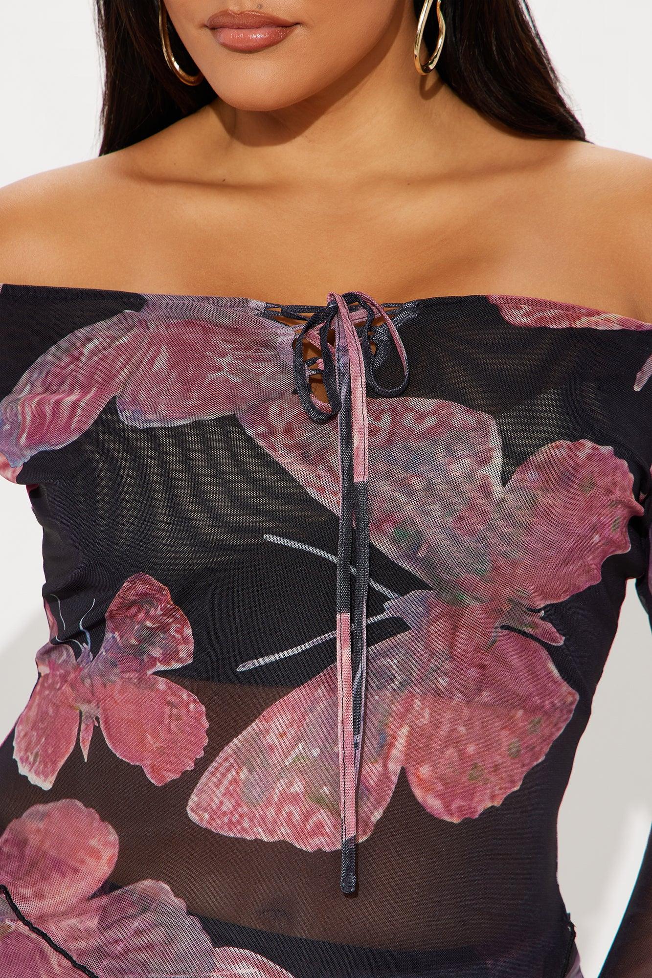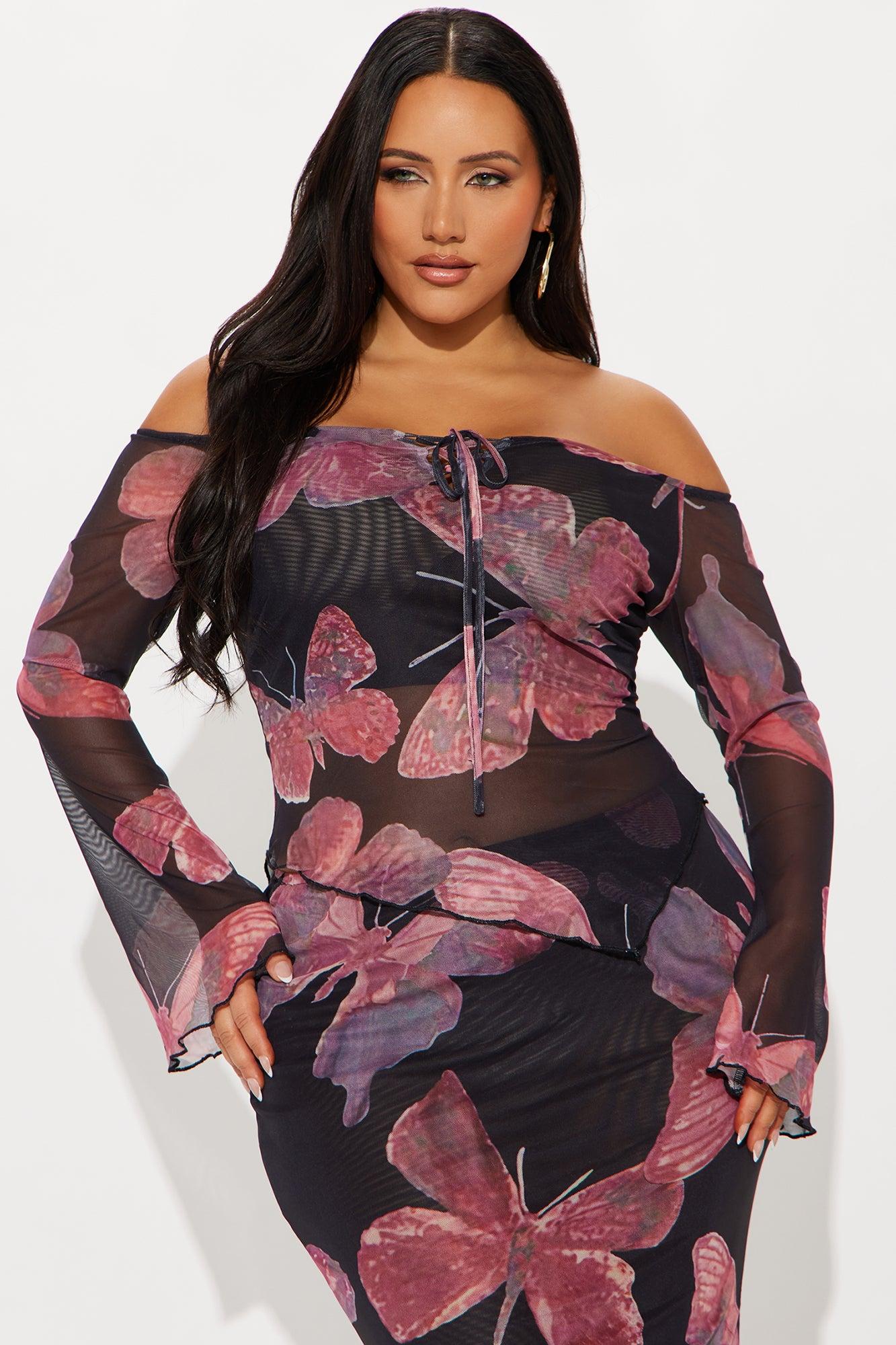 Social Butterfly Mesh Skirt Set - Pink/combo Female