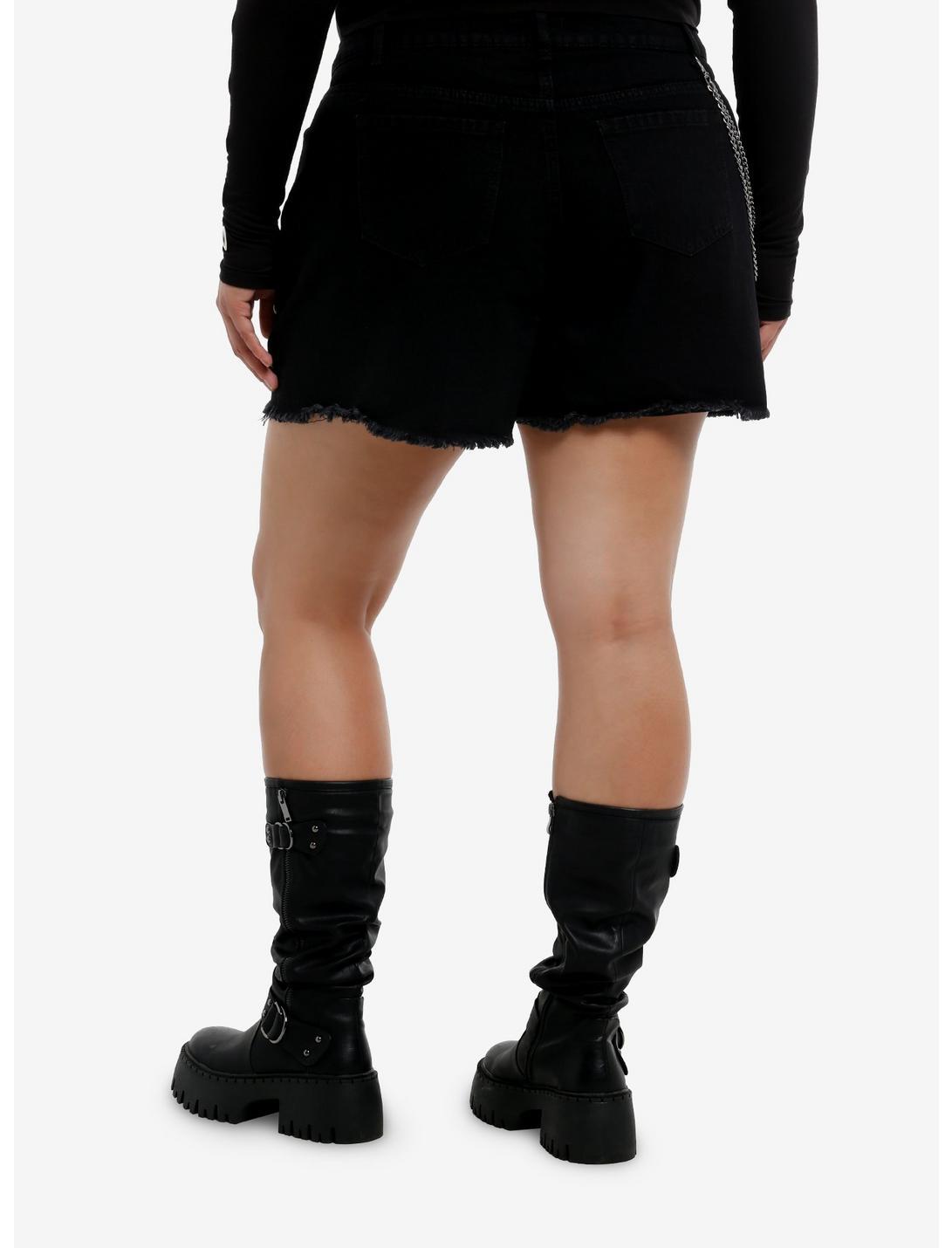 Social Collision Black Denim & Faux Leather Shorts With Chains Plus Size