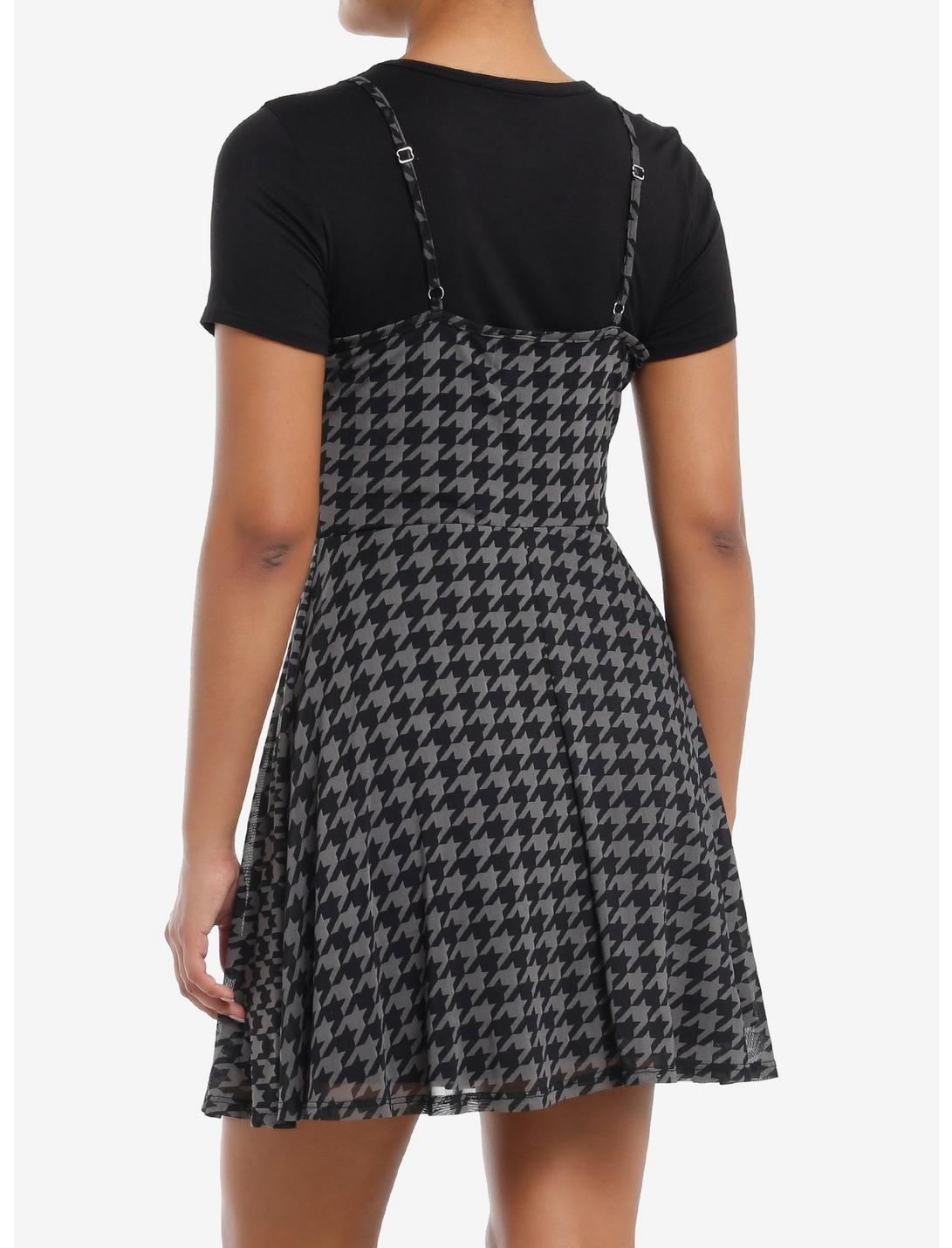 Social Collision Black & Grey Houndstooth Twofer Dress