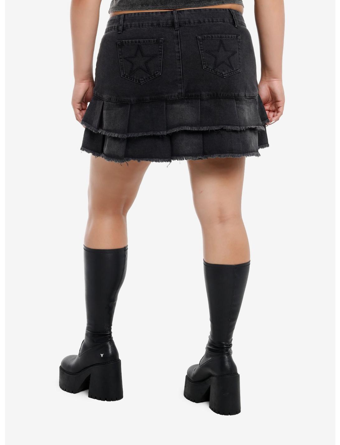 Social Collision Black Stud & Charm Ruffle Denim Mini Skirt Plus Size