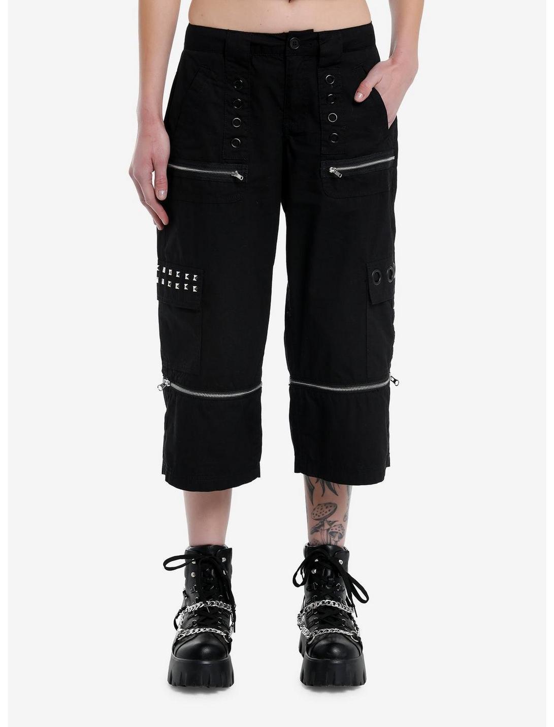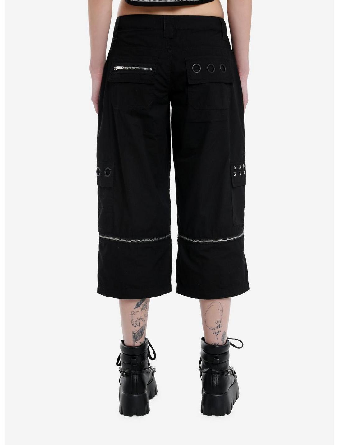Step into summer with these versatile shorts! They have a capri length and come with a zip-off feature so you can adjust them to your liking. There's cargo pockets with pyramid stud and black grommet detailing, plus hip and back pockets with more grommets. Complete with zipper accents.Please note: Style is fitted with no stretch; size up for a looser fit.100% cottonWash cold; dry flatRise: 11''Inseam: 20''ImportedListed in junior sizesModel is 5'10''Model wears size 3