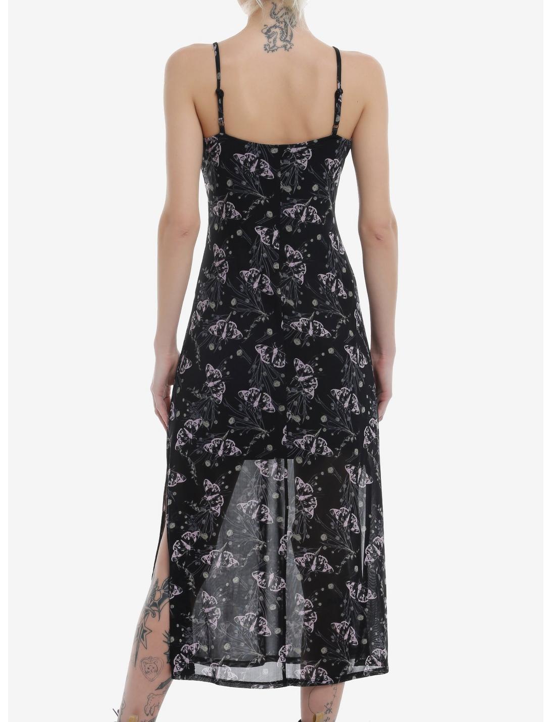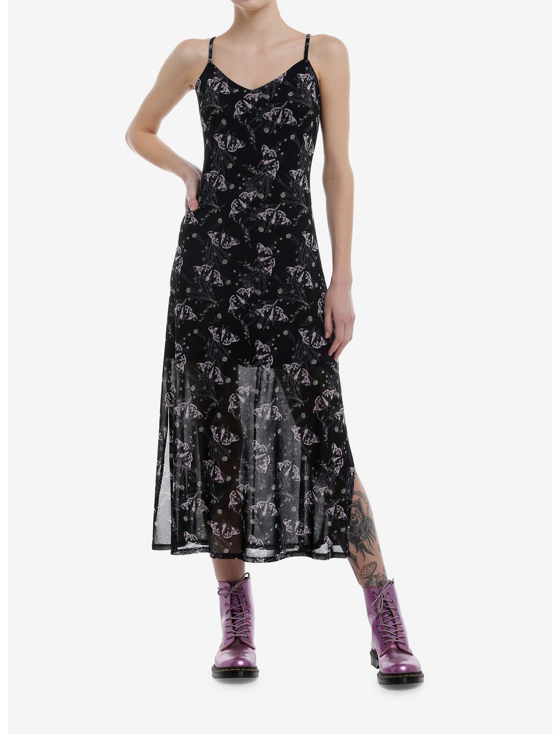Spread your wings with this gorgeous maxi dress! It features an allover print of butterflies and flowers on mesh. Comes with slits on the legs and adjustable cami straps.95% polyester; 5% spandexWash cold; dry lowLength: 42"Adjustable strapsStretchy materialImportedListed in junior sizesModel is 5'10"Model wears size Small