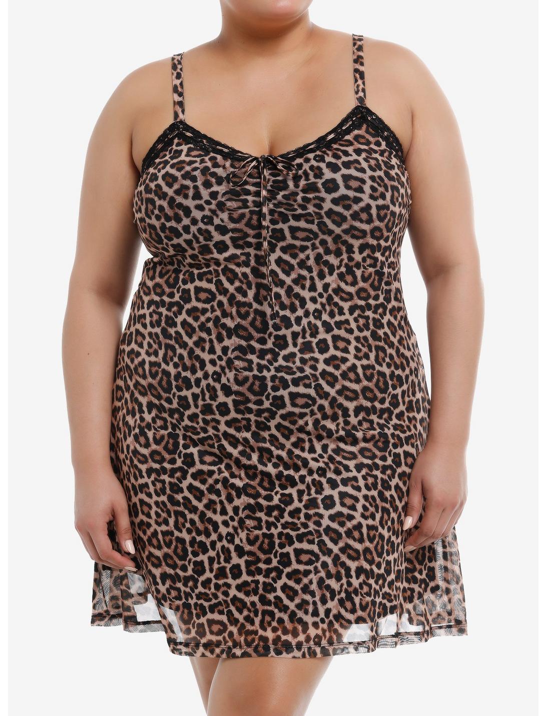 Social Collision Cheetah Print Mesh Cami Dress Plus Size