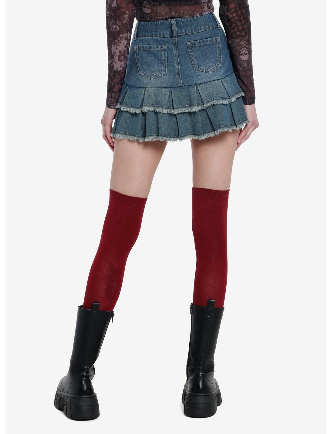 Social Collision Denim Ruffled Mini Skirt