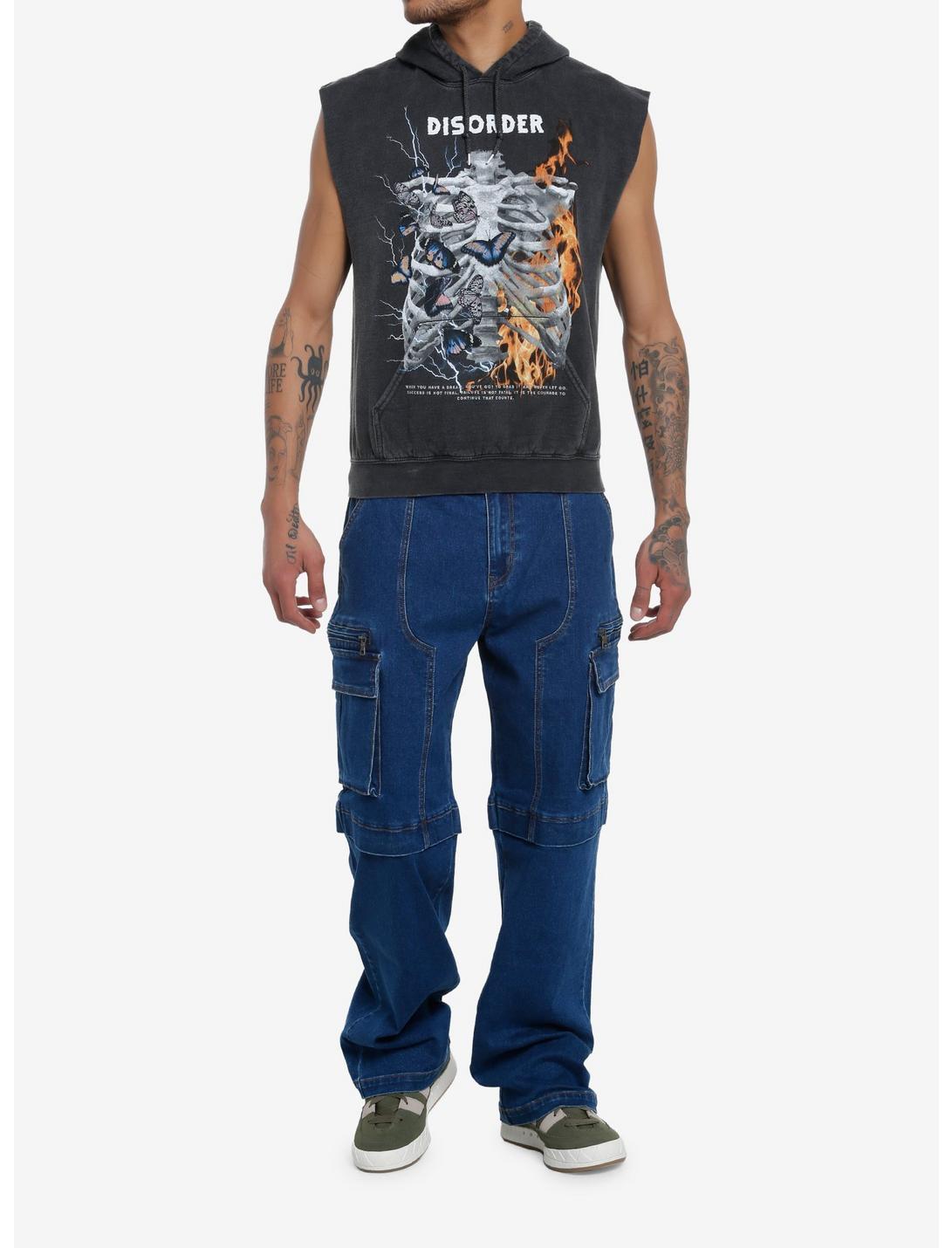 When you have a dream, you've got to grab it and never let go...Grab this sleeveless hoodie from Social Collision featuring a rib cage half engulfed in flames, and half decorated with lightning bolts and butterflies. The word "DISORDER" appears above. Front kangaroo pocket and drawstring hood.100% cottonWash cold; dry lowImportedListed in men's/unisex sizesModel is 6'1"Model wears size Medium