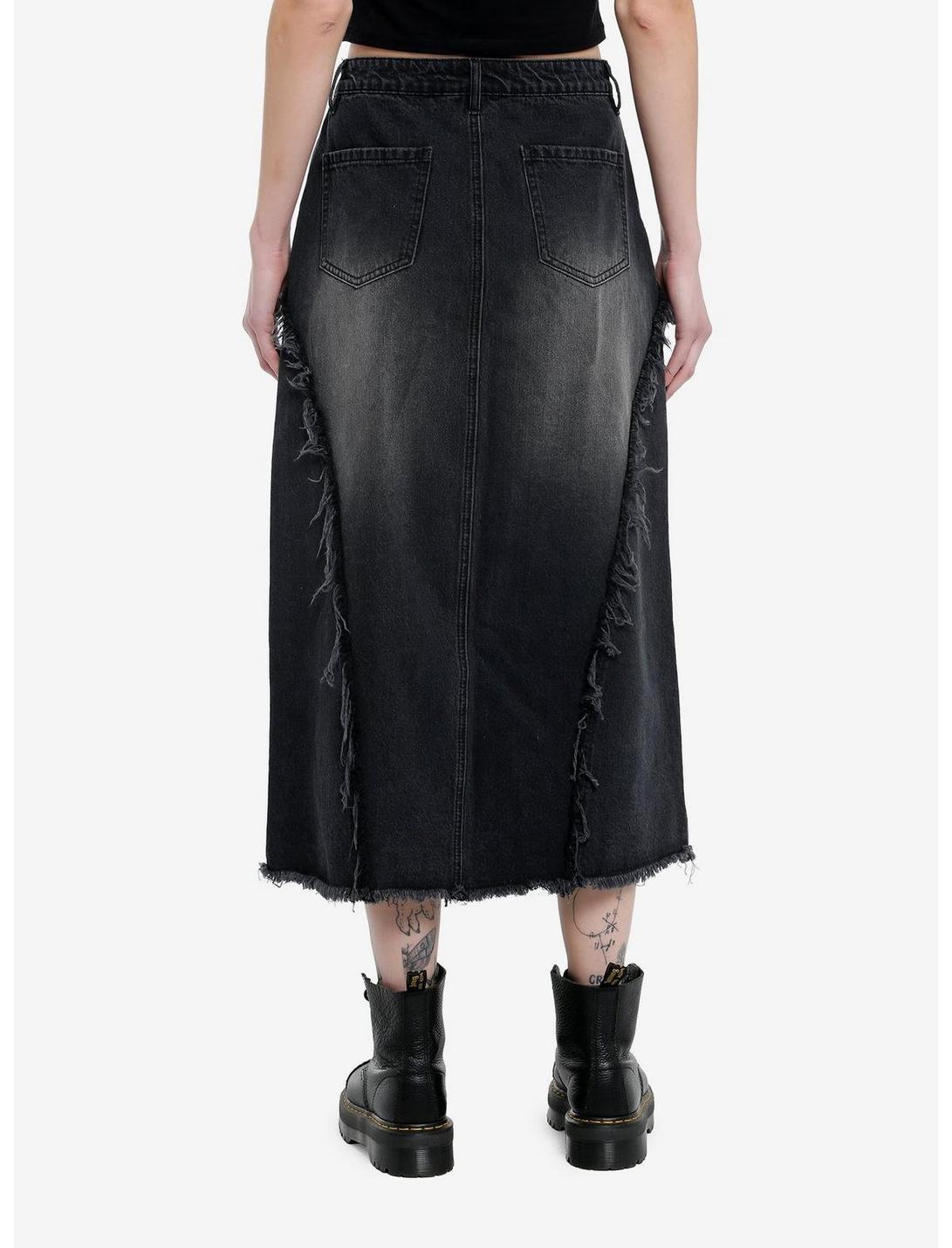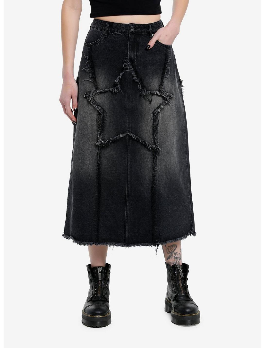 Social Collision Frayed Star Denim Midaxi Skirt