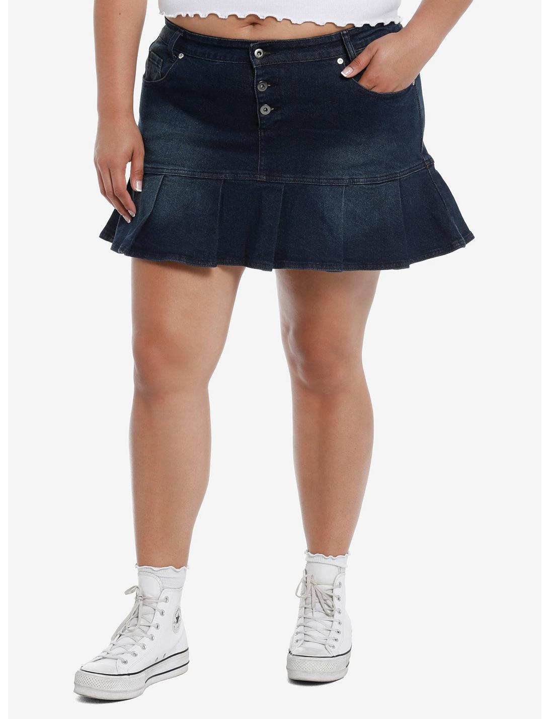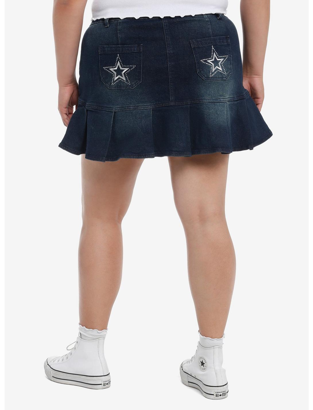Social Collision Star Bling Dark Denim Pleated Mini Skirt Plus Size