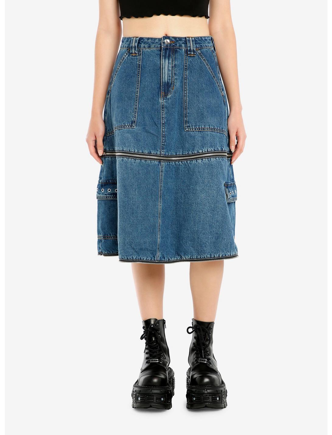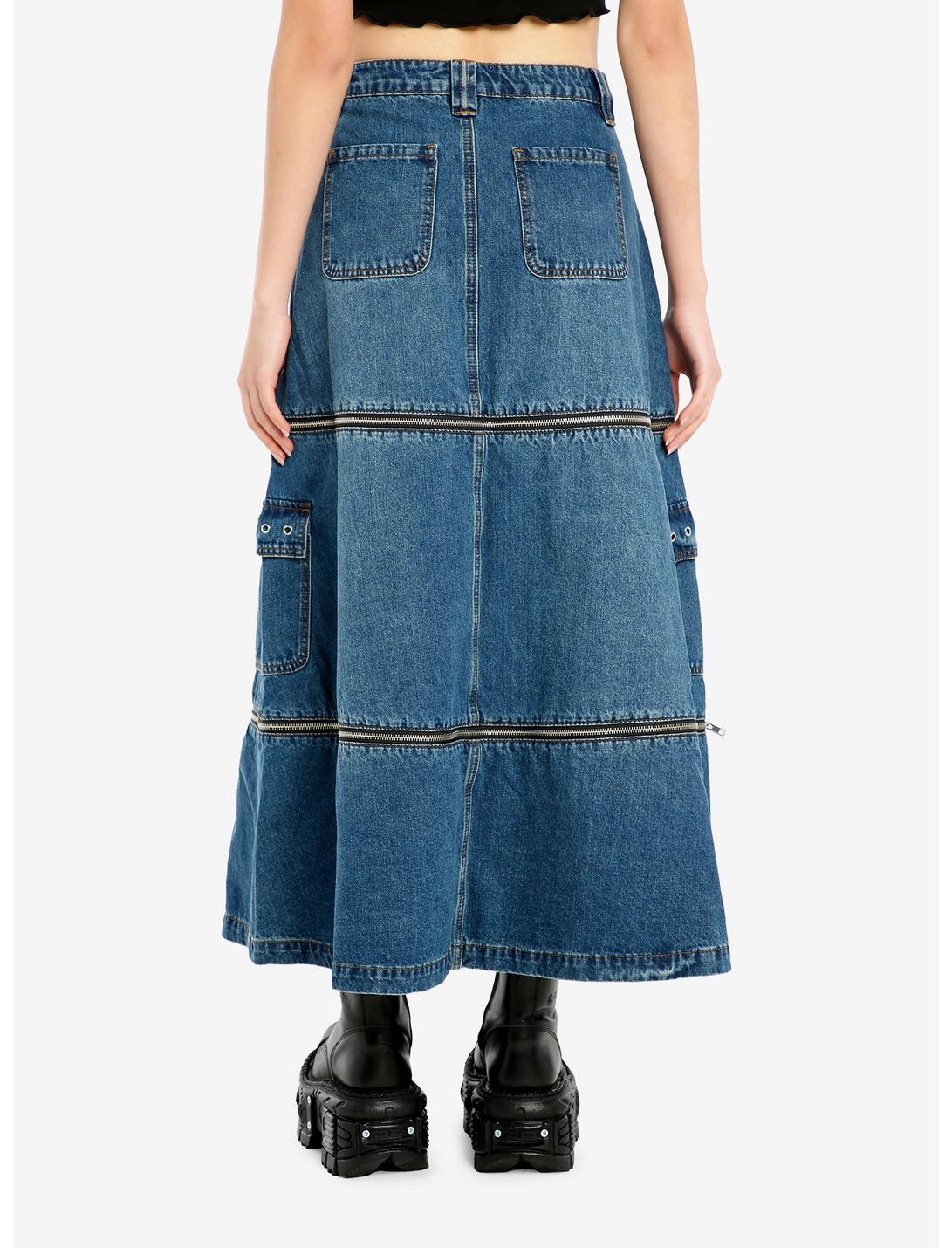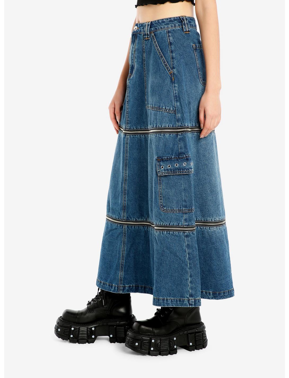 Social Collision Zip-Off Denim Cargo Maxi Skirt
