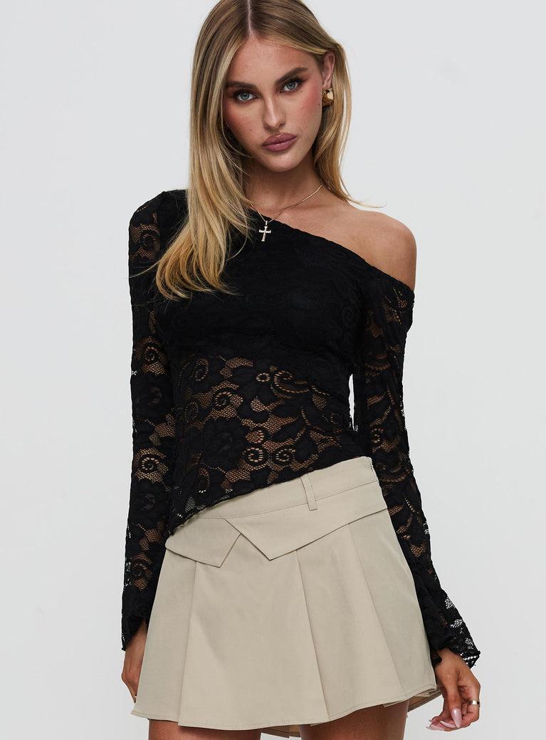 Soffie Off Shoulder Lace Long Sleeve Top Black