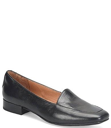 From Sofft, the Eldyn Leather Loafers feature:Full-grain leatherslip-on constructionLeather liningSoft microfiber-lined footbed cushioned at ball heel and arch for extra supportLightweight TPU outsoleLeather stacked heelApprox. 1 heelImported.