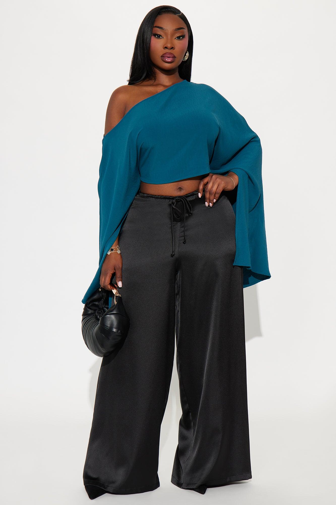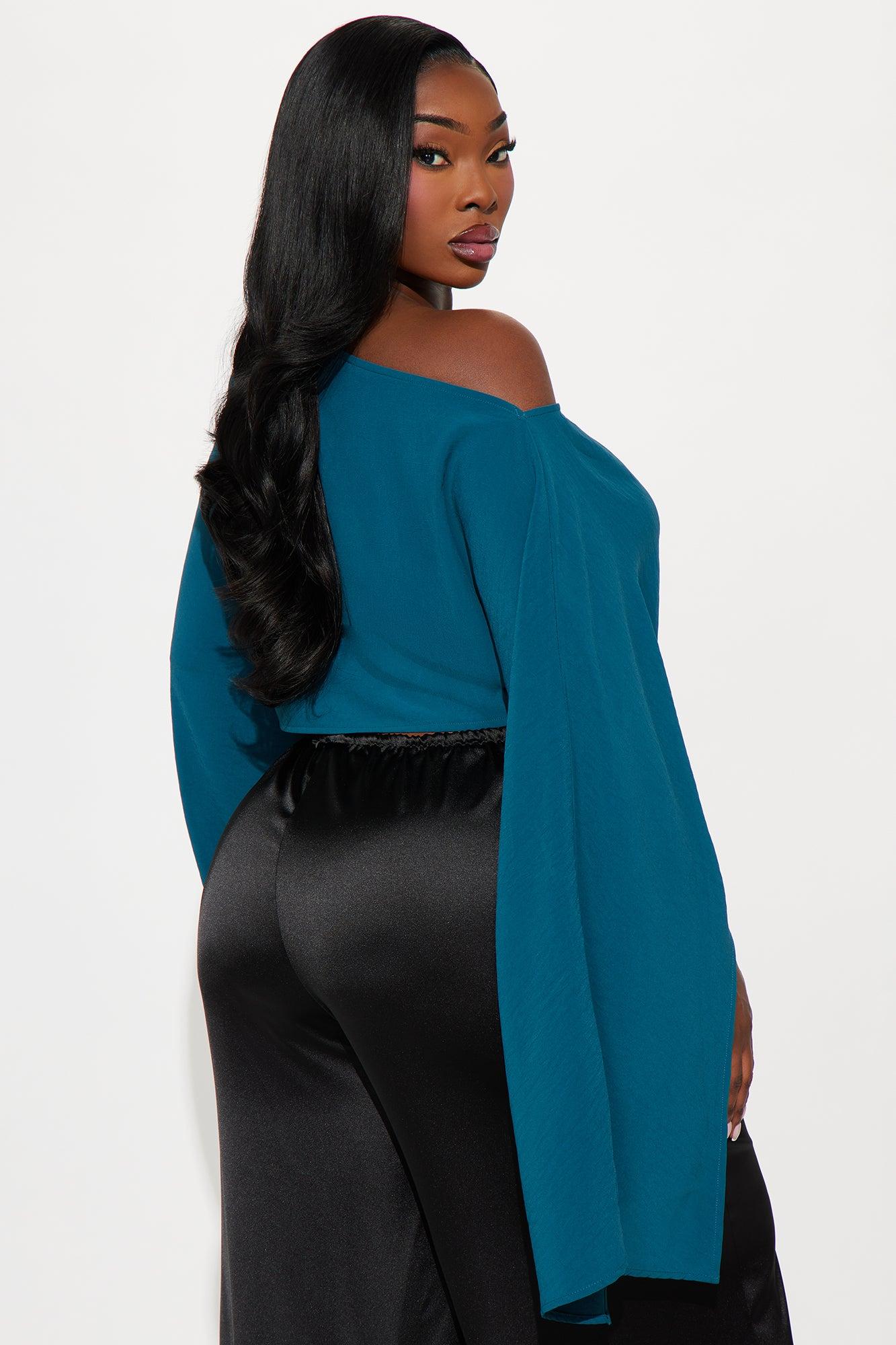 Soft Hearts Satin Off Shoulder Cape Top - Teal Female