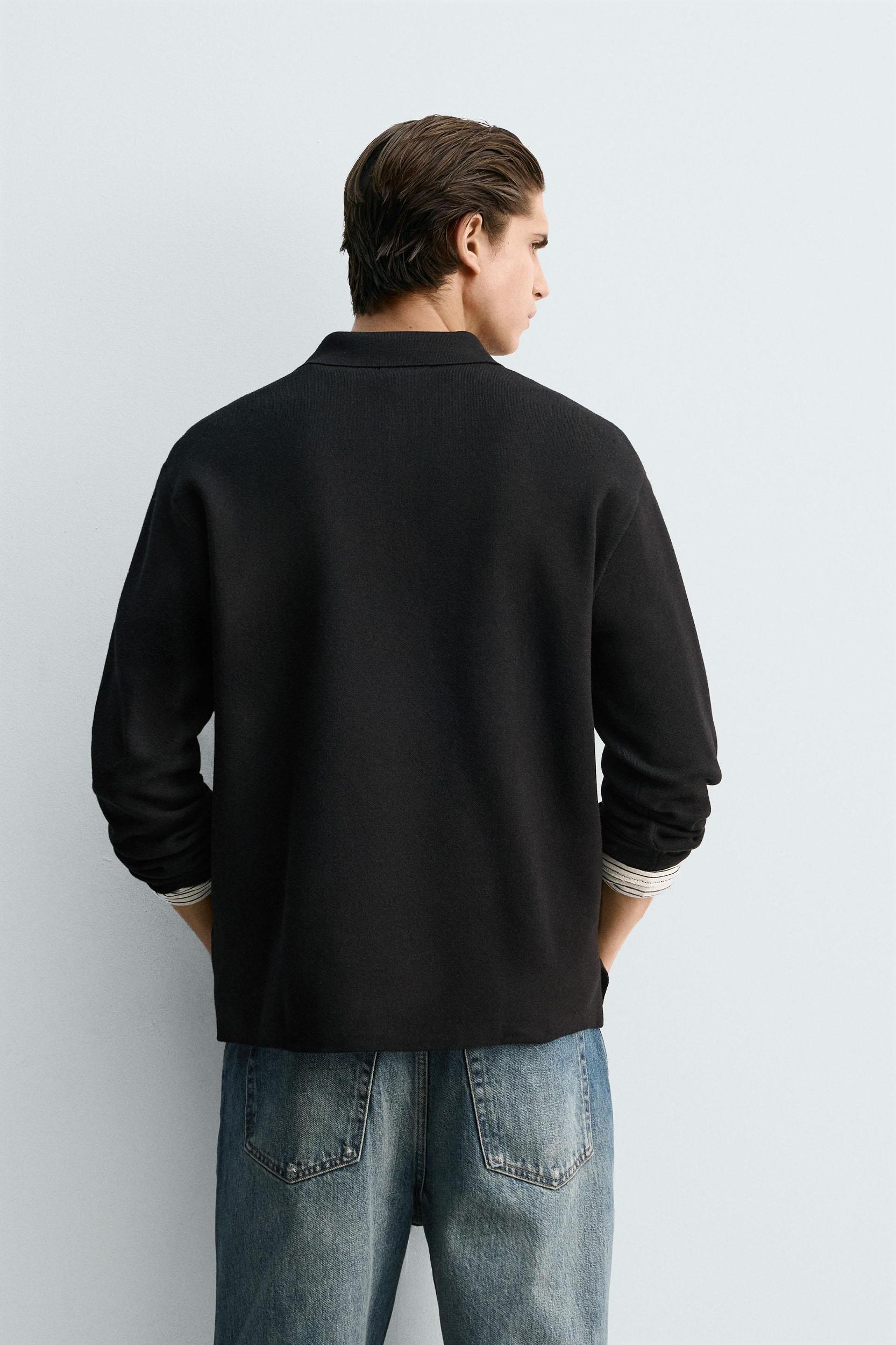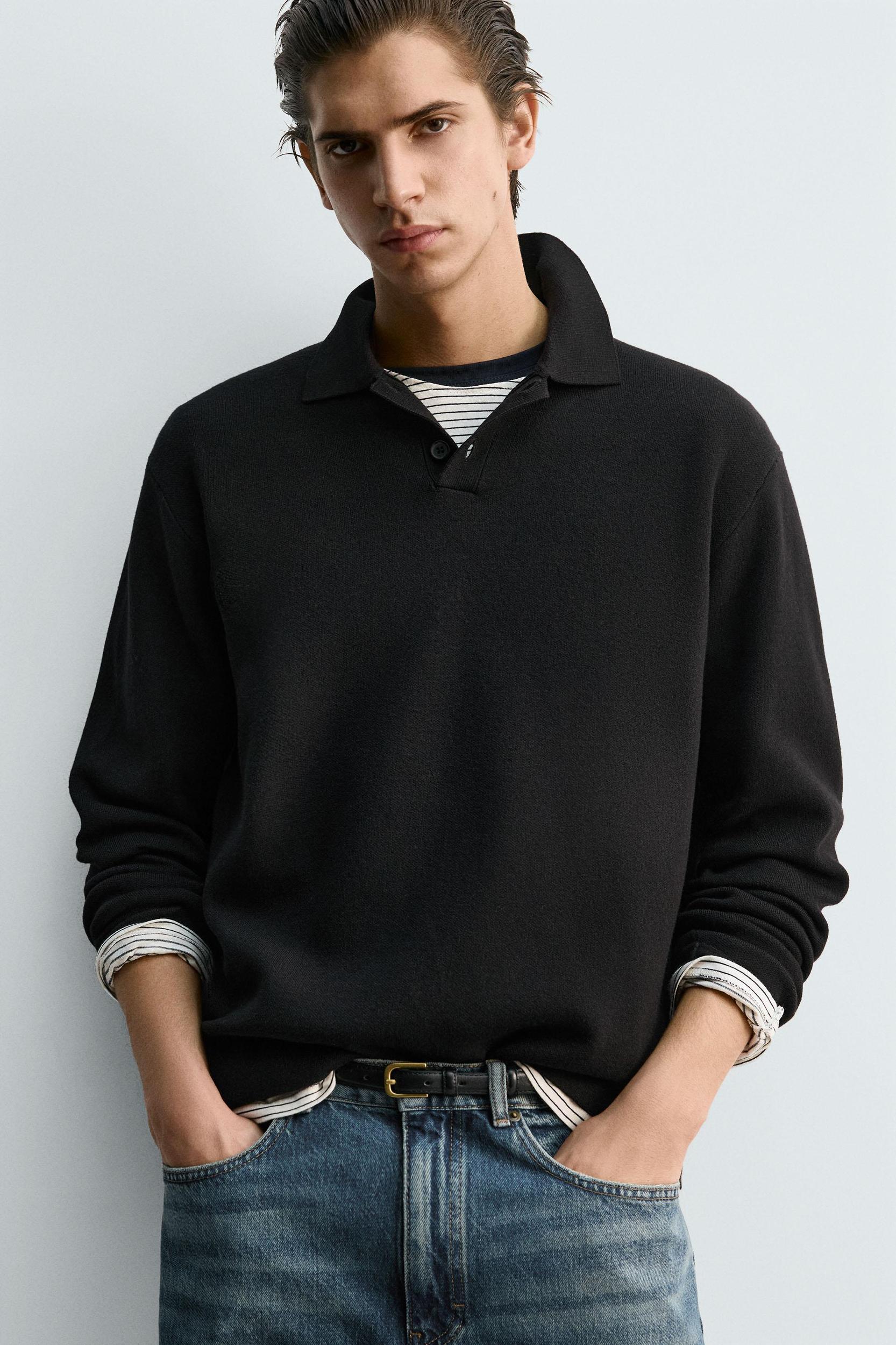 Relaxed fit knit polo shirt in soft-touch viscose yarn. Lapel collar with front button closure. Long sleeves. Hem with side vents.