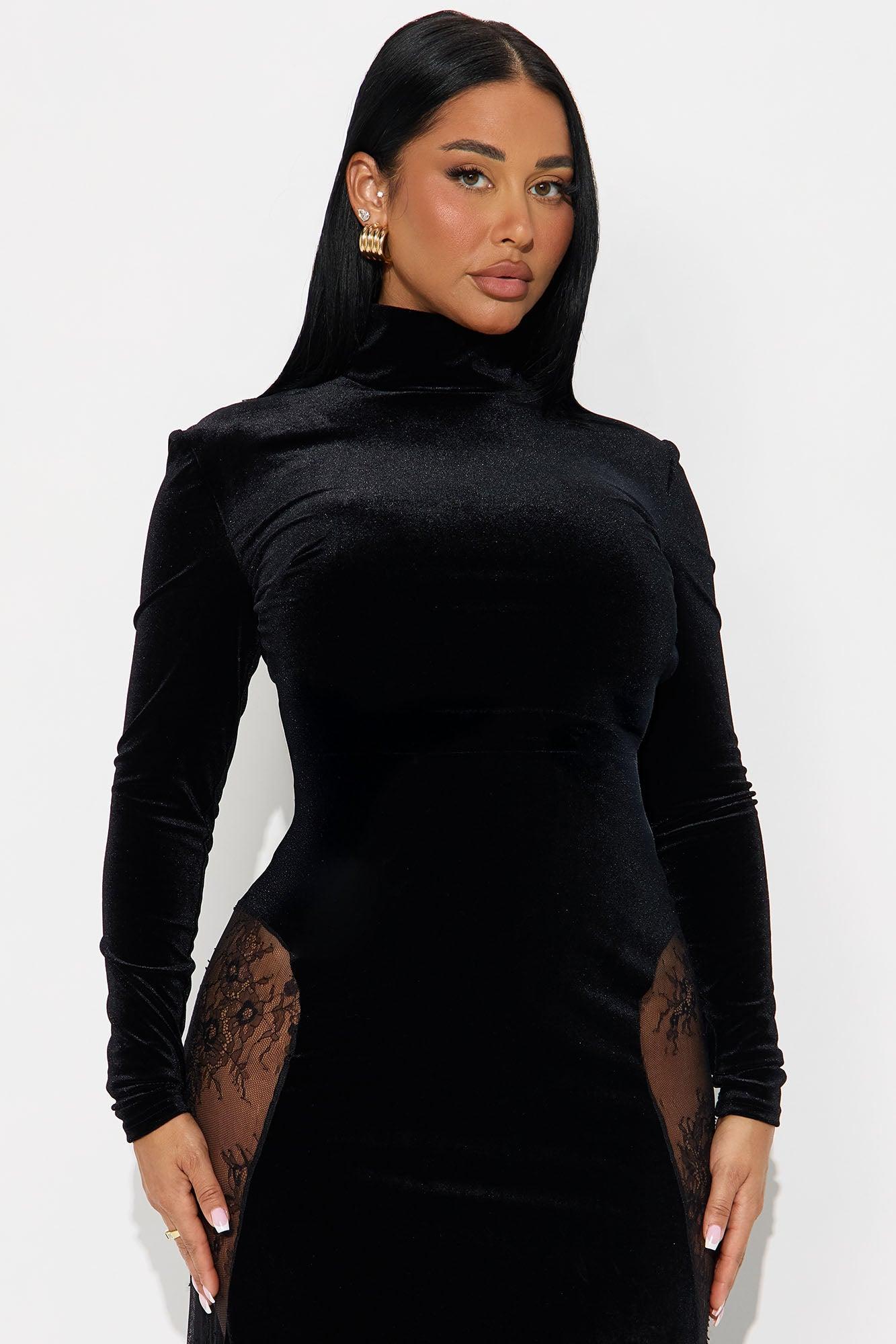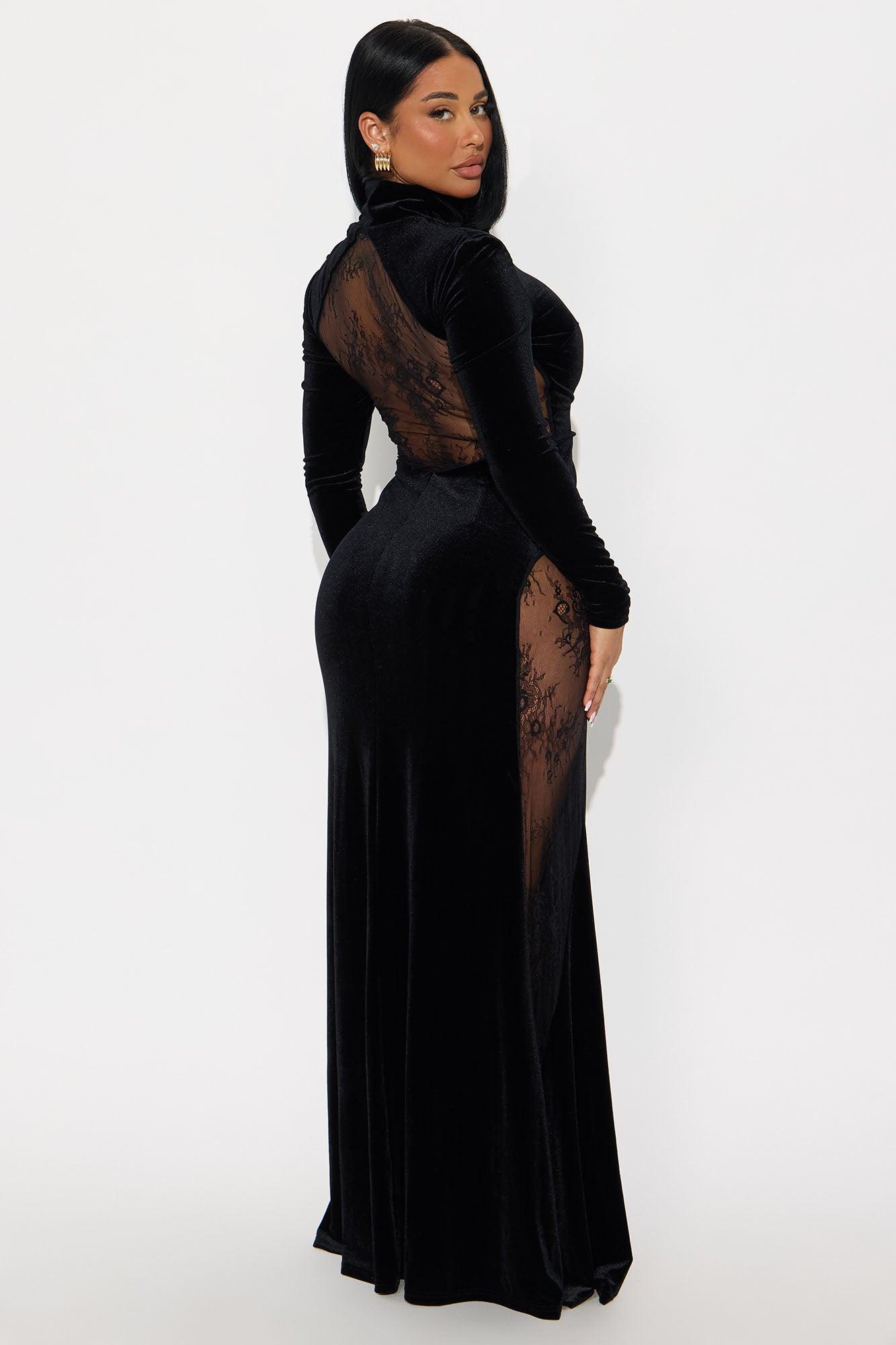 Elevated Party Velvet Maxi Dress - Black