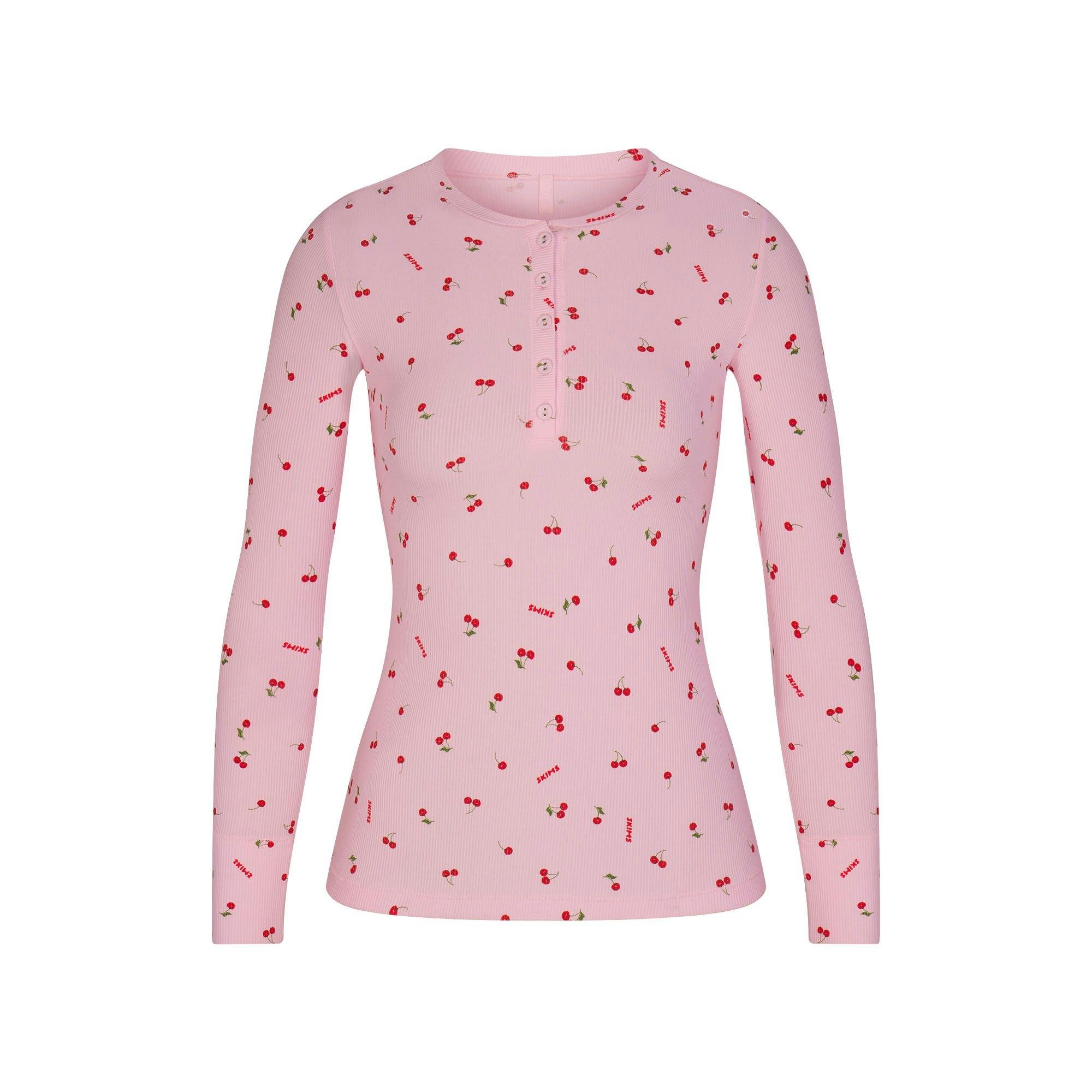SOFT LOUNGE LONG SLEEVE HENLEY | CHERRY BLOSSOM PRINT