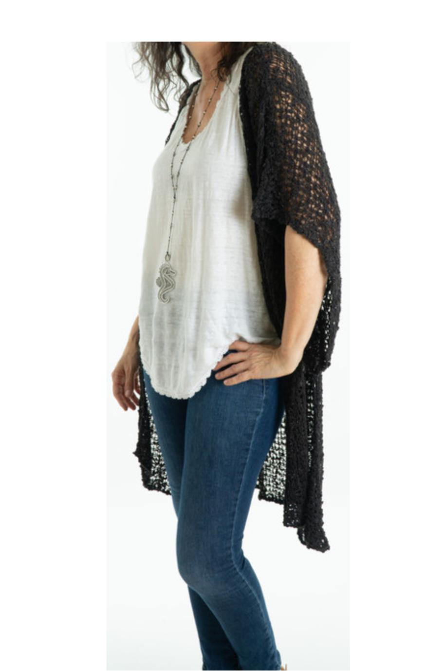 Super Soft Lightweight Black Knit Popcorn Kimono Cardigan.