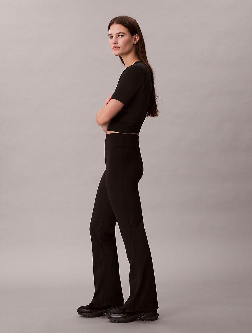 Body-defining microfiber stretch to support limitless movement. These leggings have a high waist silhouette and feature a flared fit. Made with moisture-wicking fabric to ensure total comfort.