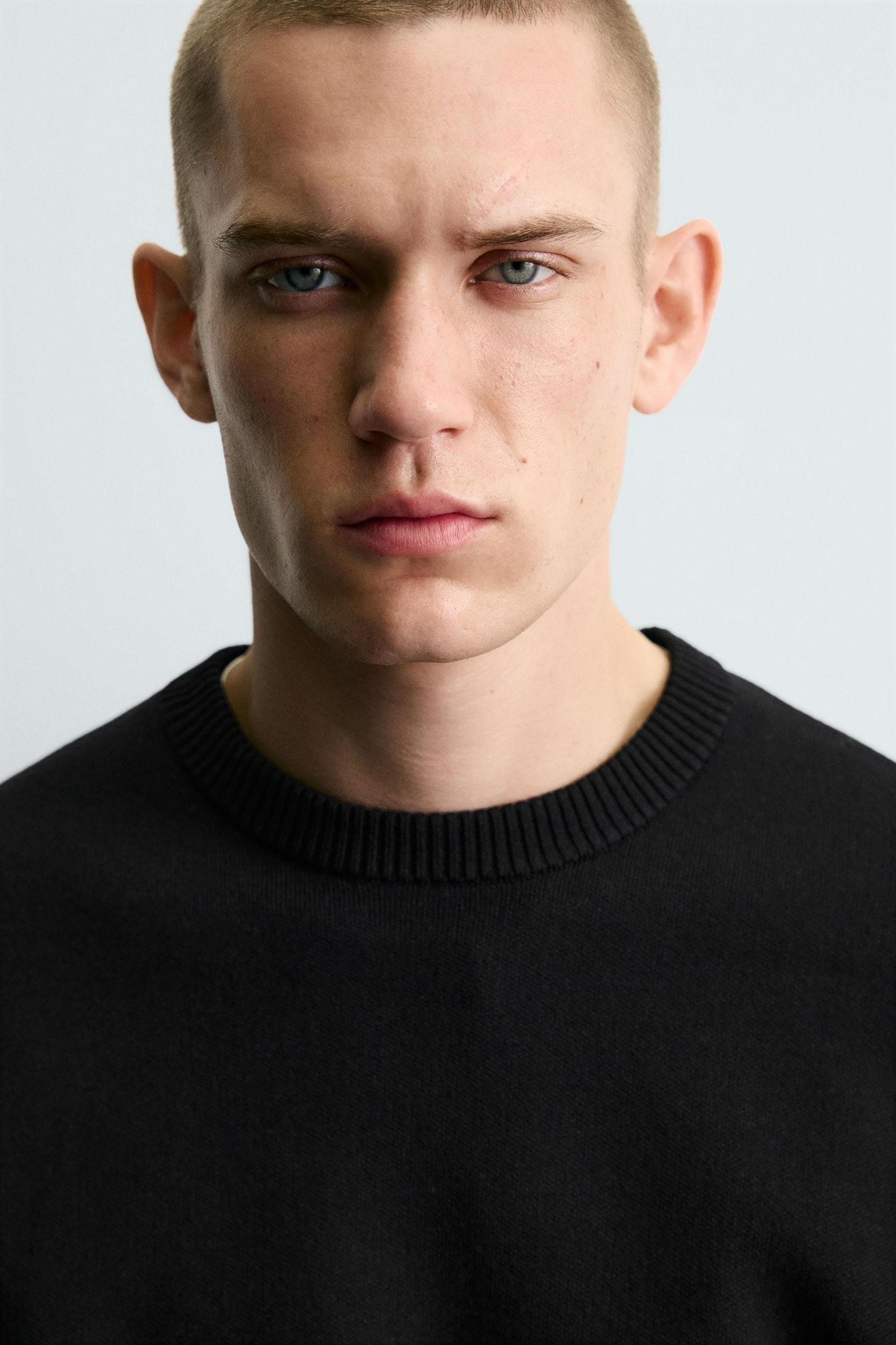 Relaxed fit sweater knit in soft-touch viscose yarn. Round neck and long sleeves. Ribbed trim.