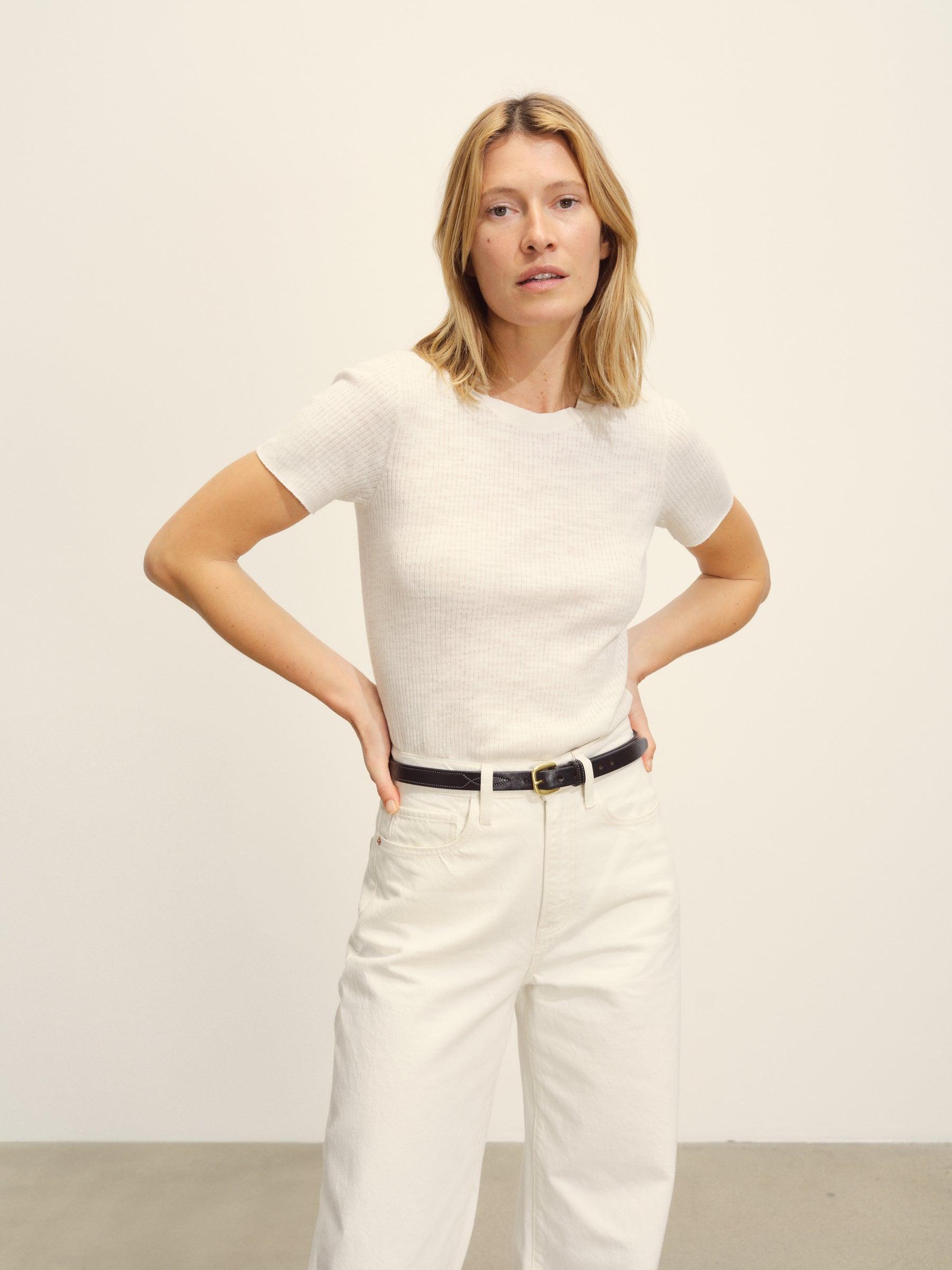 Slim fit, ribbed short-sleeve tee made from a 14 gauge linen cotton blend.