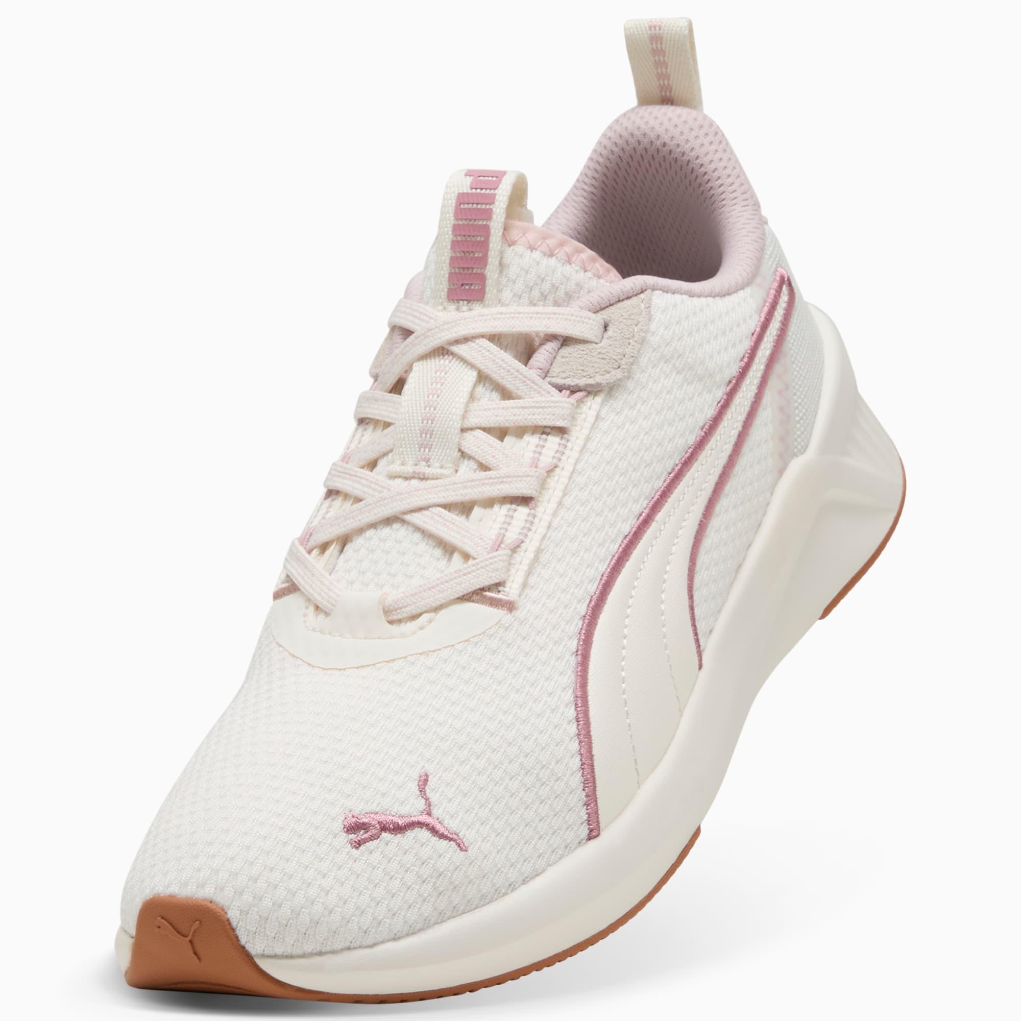 descriptionStep into the future with our latest women's running silhouette. Featuring Softride cushioning and zoned rubber traction, it's designed for those who crave style and comfort. Perfect for your active lifestyle.Style: 311100_10Color: Warm White-Mauve Mist-Poised Pinkfeatures & benefitsThe upper of the shoes is made with at least 30% recycled materialsSOFTRIDE: Soft foam designed for all-day cushioning and comfortSOFTFOAM+: Step-in comfort sockliner designed to provide soft cushioning thanks to its extra thick heeldetailsLace closureLow bootCushioning level: MediumZoned rubber tractionPUMA branding detailsmaterials & careMaterial informationMidsole: 100% SyntheticSockliner: 100% TextileOutsole: 62.45% Synthetic, 37.55% RubberUpper: 66.86% Textile, 30.46% Synthetic, 2.68% Leather - cowLining: 100% Textile
