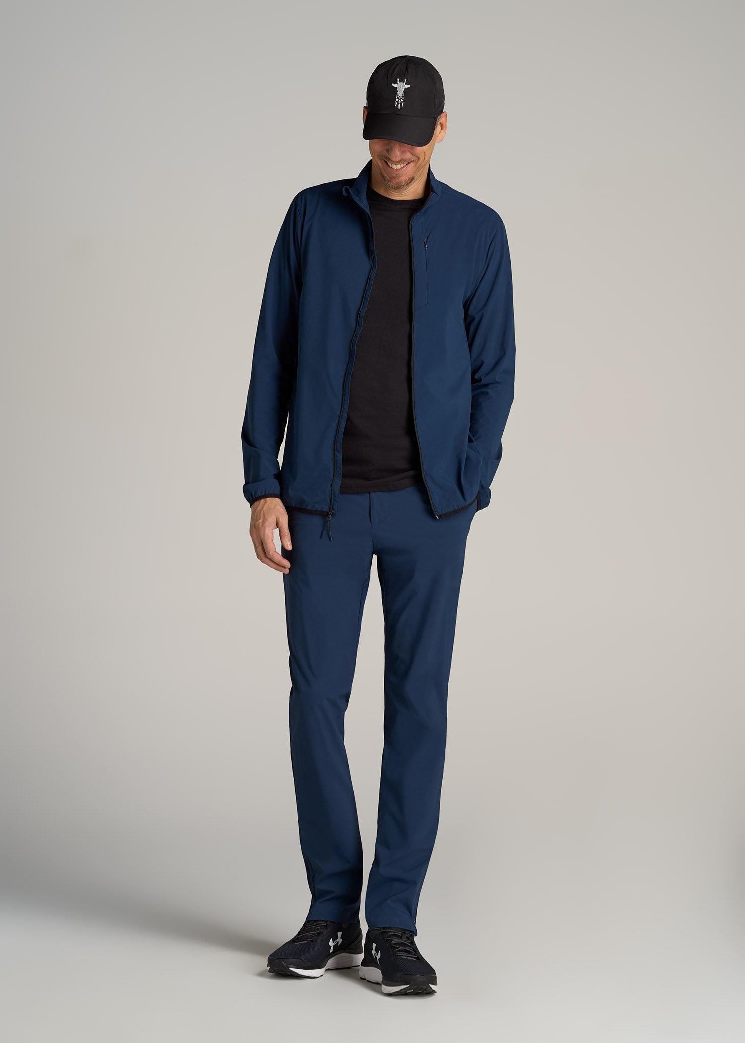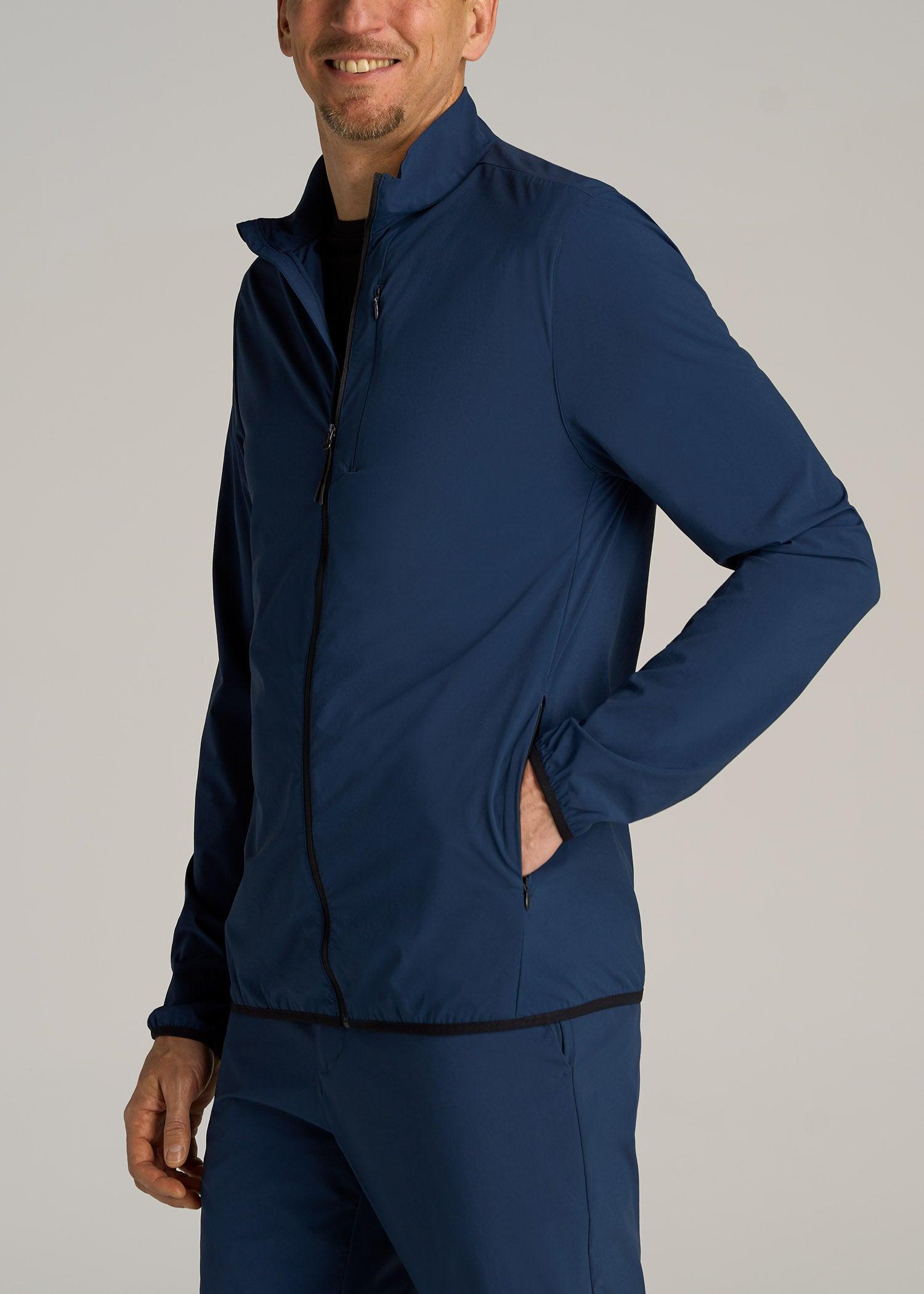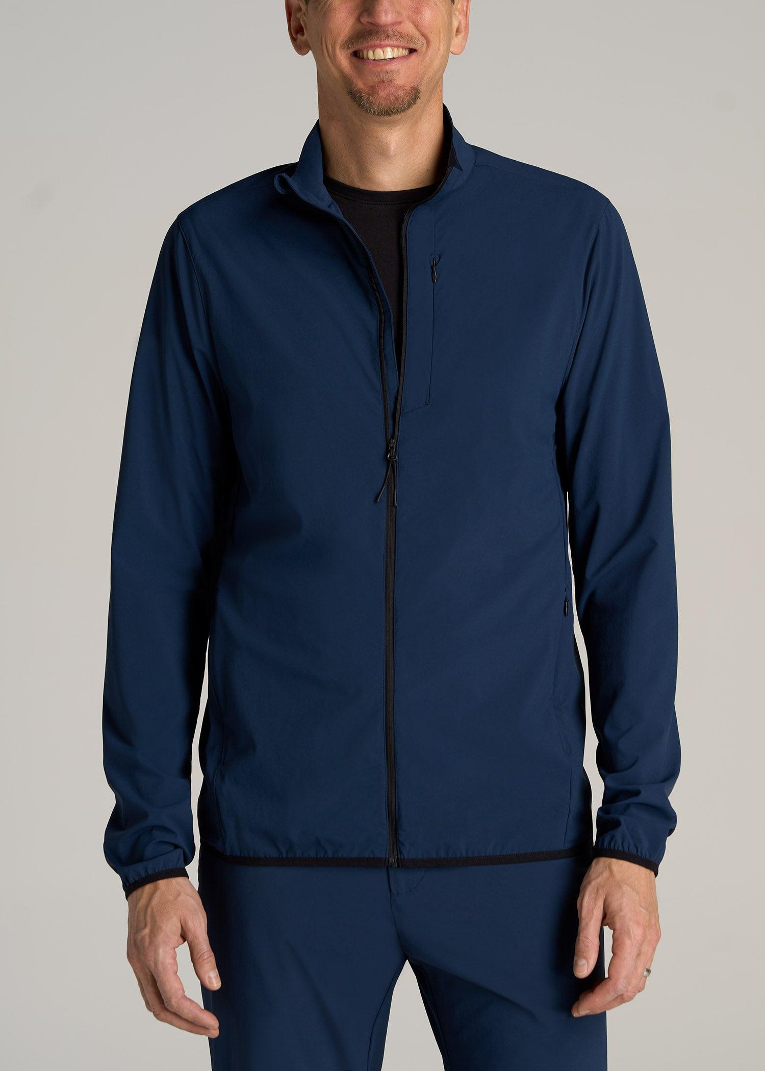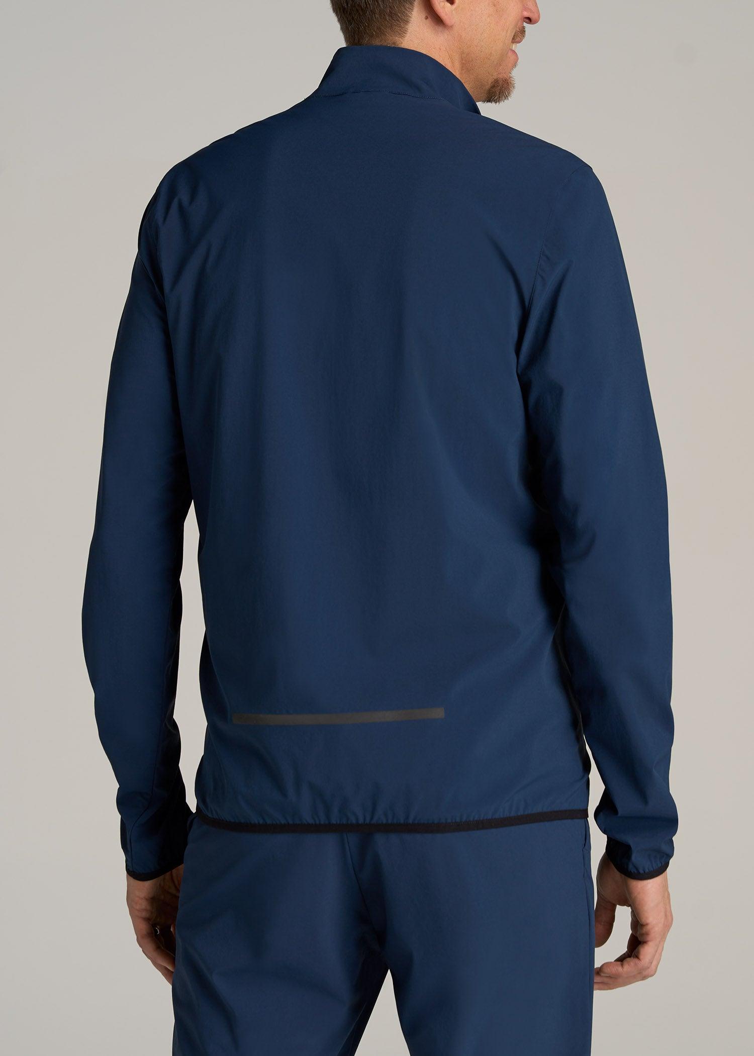 About Our Training Shell Jacket for Tall Men This Lightweight Outdoor Training Shell Jacket for tall men is one you'll reach for, day after day. From running errands to playing a round of golf, you'll look polished in its clean, modern fit. It's made with a stretch-infused nylon blend that wicks away moisture for those muggy commutes and midday strolls. We've designed this tall men's jacket with functional details for the demands of your on-the-go lifestyle, like two concealed zipper pockets and reflective accents. With long sleeves that reach to your wrists and a hip-length cut that won't drift upward, this full-zip men's tall shell is your answer to outdoor training, travel and everything in between. SIZE & FIT: Modern fit Hip length Elastic cuffs Full front zip Model is 6'9", 205lbs wearing size M Tall Size M Tall: Body length: 31", Sleeve length: 39.5" FABRIC & CARE: 85% nylon, 15% elastic Moisture wicking Quick drying Reflective taping Concealed zip chest pocket with mesh pocket bag Concealed zip side pocket with mesh pocket bag Machine wash cold with like colors Do not bleach Tumble dry low Cool iron if needed