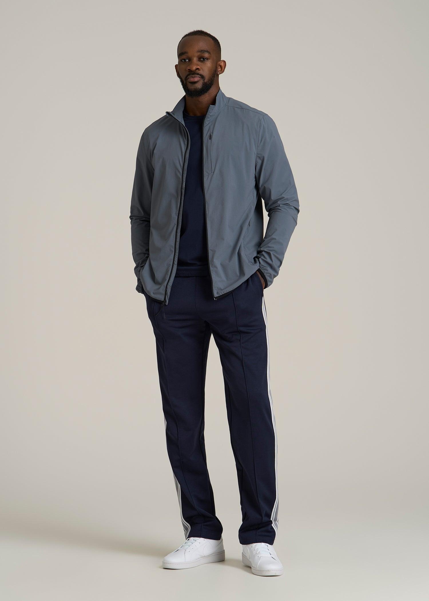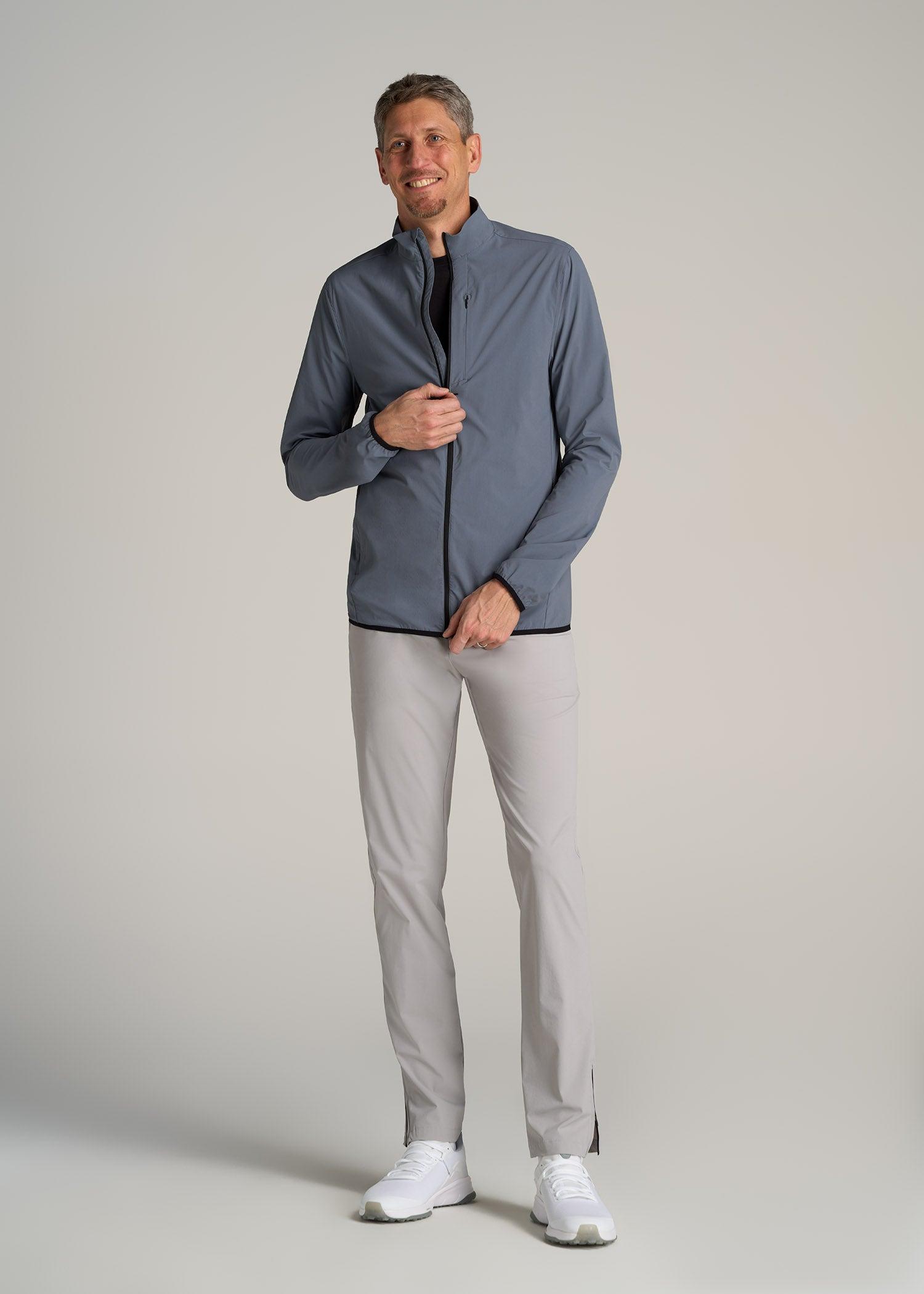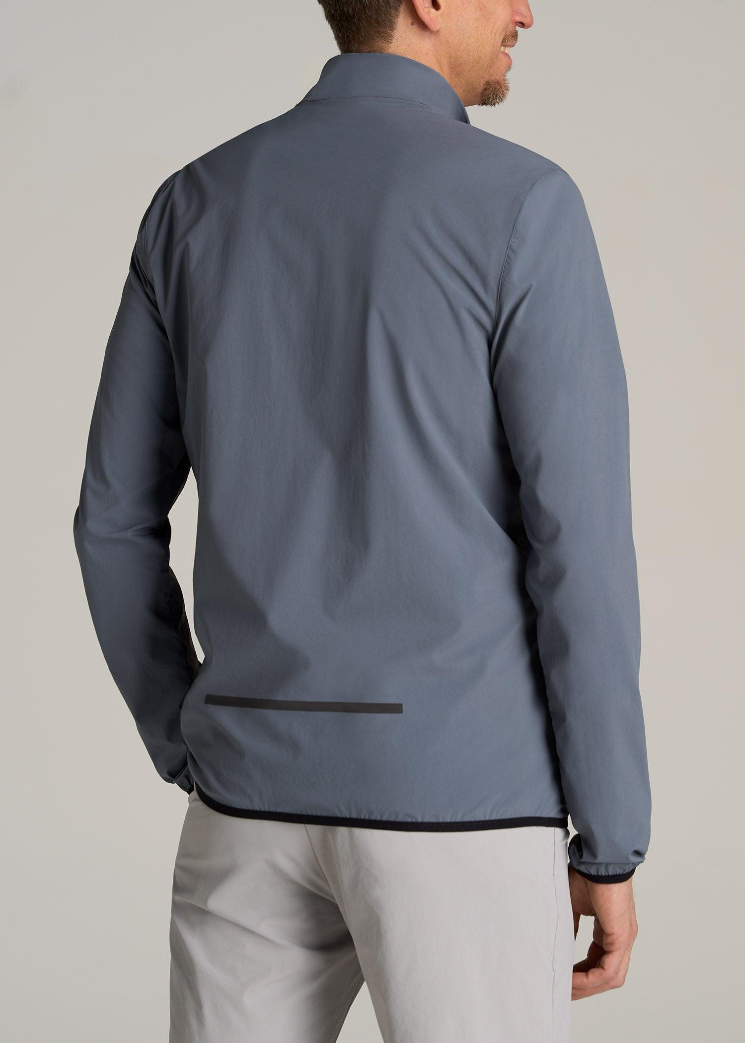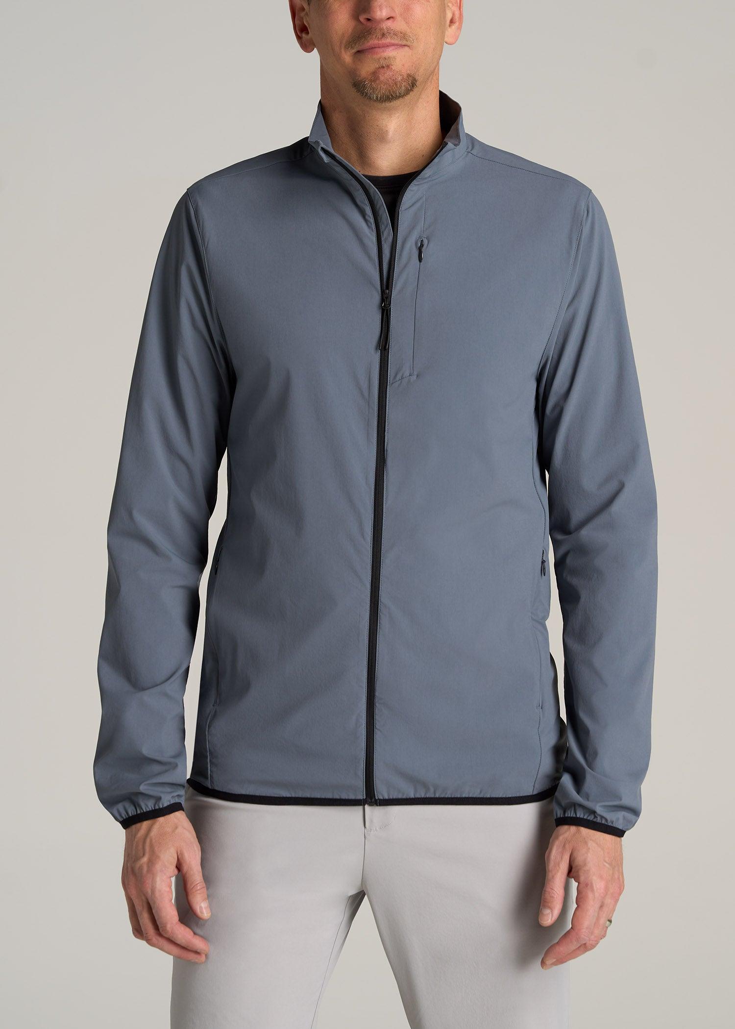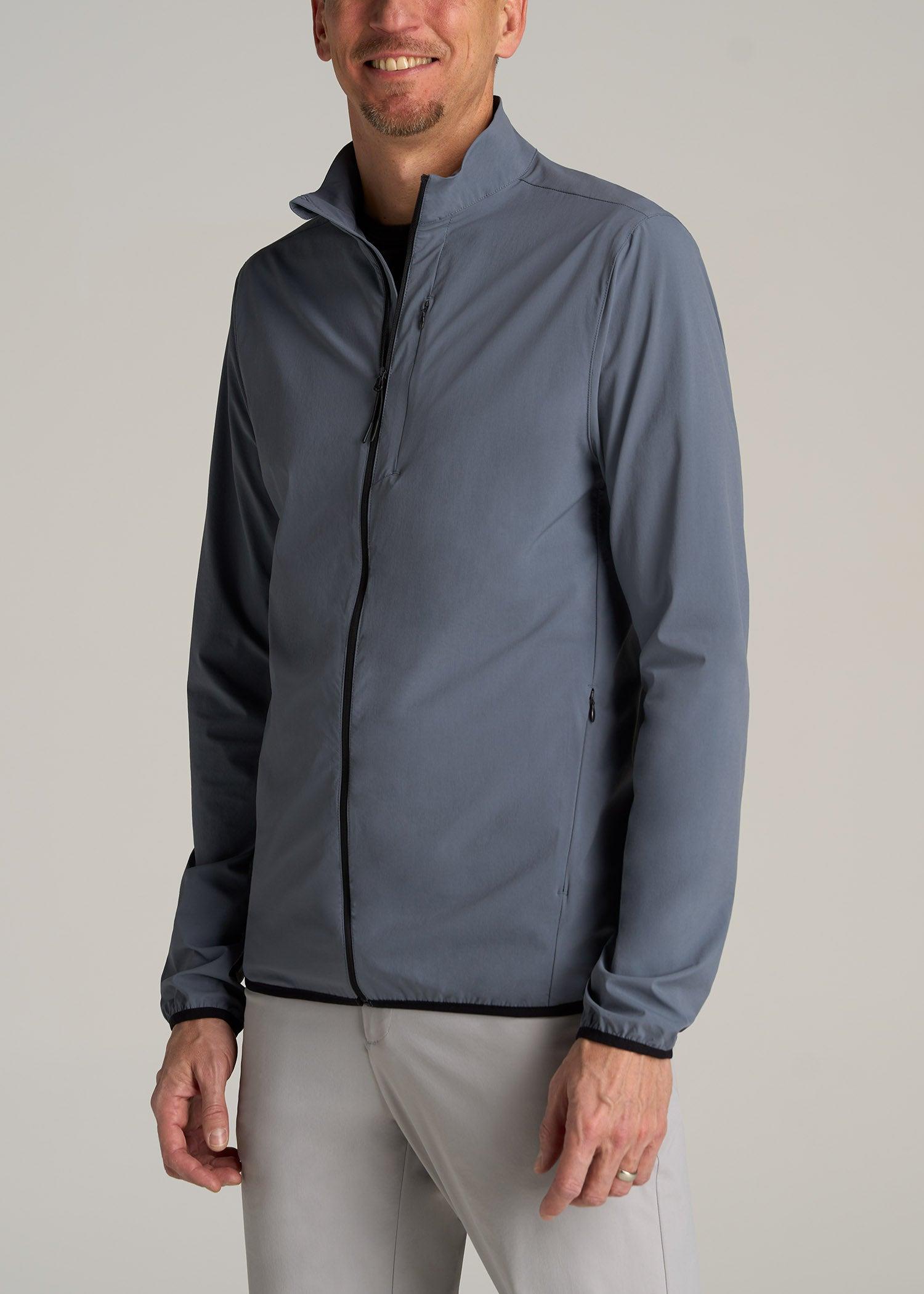 About Our Training Shell Jacket for Tall Men This Lightweight Outdoor Training Shell Jacket for tall men is one you'll reach for, day after day. From running errands to playing a round of golf, you'll look polished in its clean, modern fit. It's made with a stretch-infused nylon blend that wicks away moisture for those muggy commutes and midday strolls. We've designed this tall men's jacket with functional details for the demands of your on-the-go lifestyle, like two concealed zipper pockets and reflective accents. With long sleeves that reach to your wrists and a hip-length cut that won't drift upward, this full-zip men's tall shell is your answer to outdoor training, travel and everything in between. SIZE & FIT: Modern fit Hip length Elastic cuffs Full front zip Model is 6'9", 205lbs wearing size M Tall Size M Tall: Body length: 31", Sleeve length: 39.5" FABRIC & CARE: 85% nylon, 15% elastic Moisture wicking Quick drying Reflective taping Concealed zip chest pocket with mesh pocket bag Concealed zip side pocket with mesh pocket bag Machine wash cold with like colors Do not bleach Tumble dry low Cool iron if needed