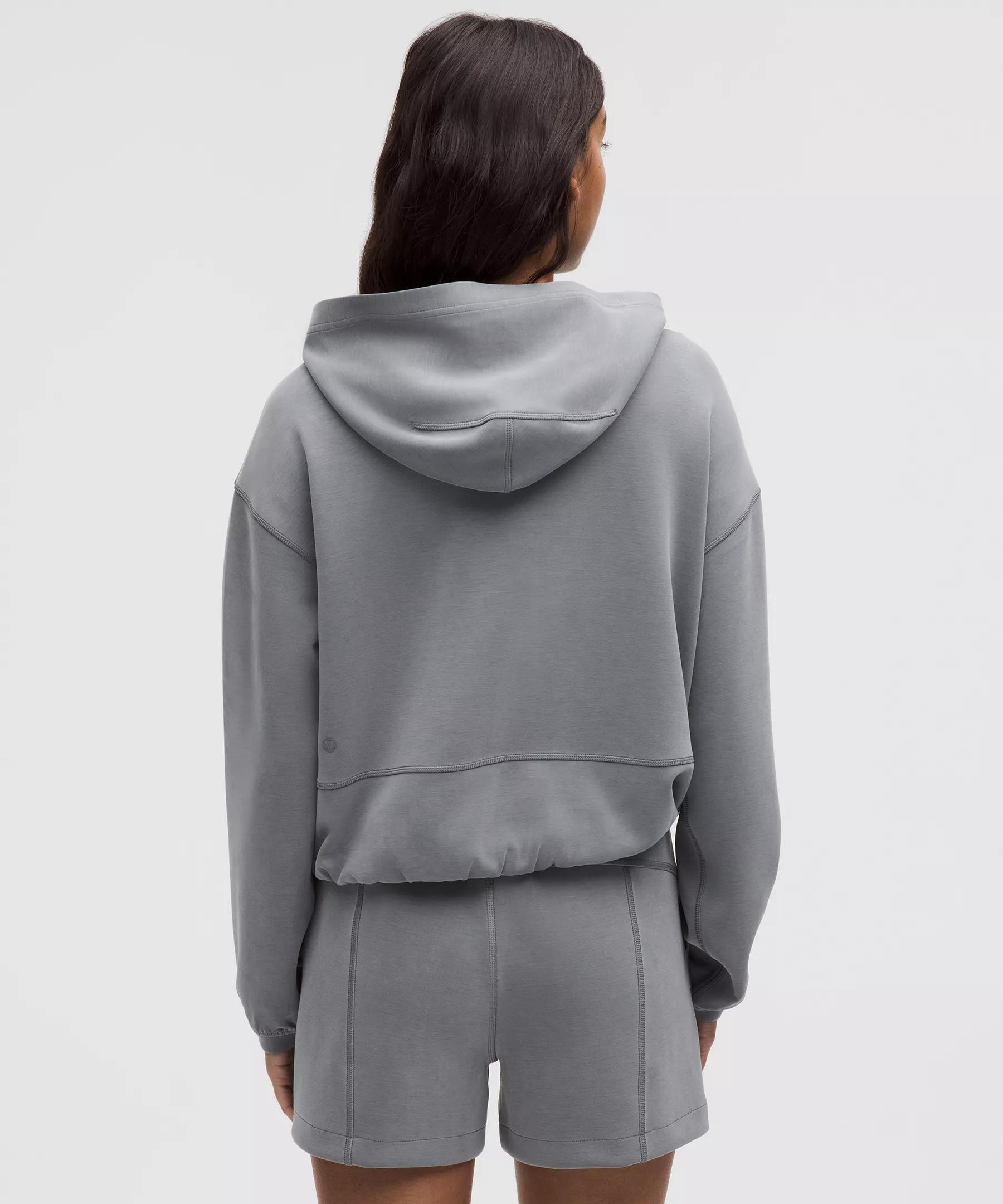 Lend some luxe to your weekend look. Feel-it-to-believe it Softstreme™ fabric brings slinky softness to this hoodie while the gathered bubble hem adds a playful pop of volume.