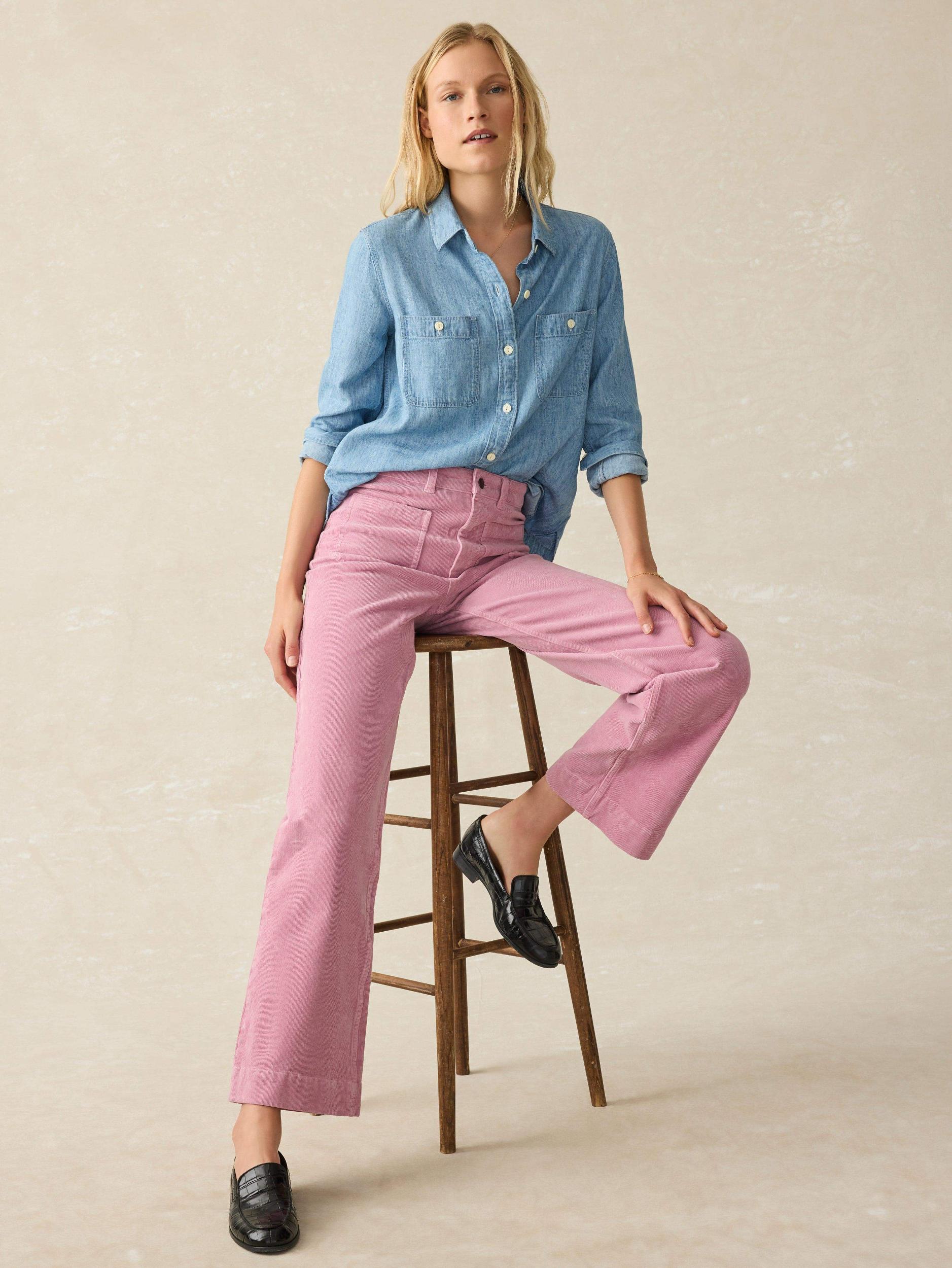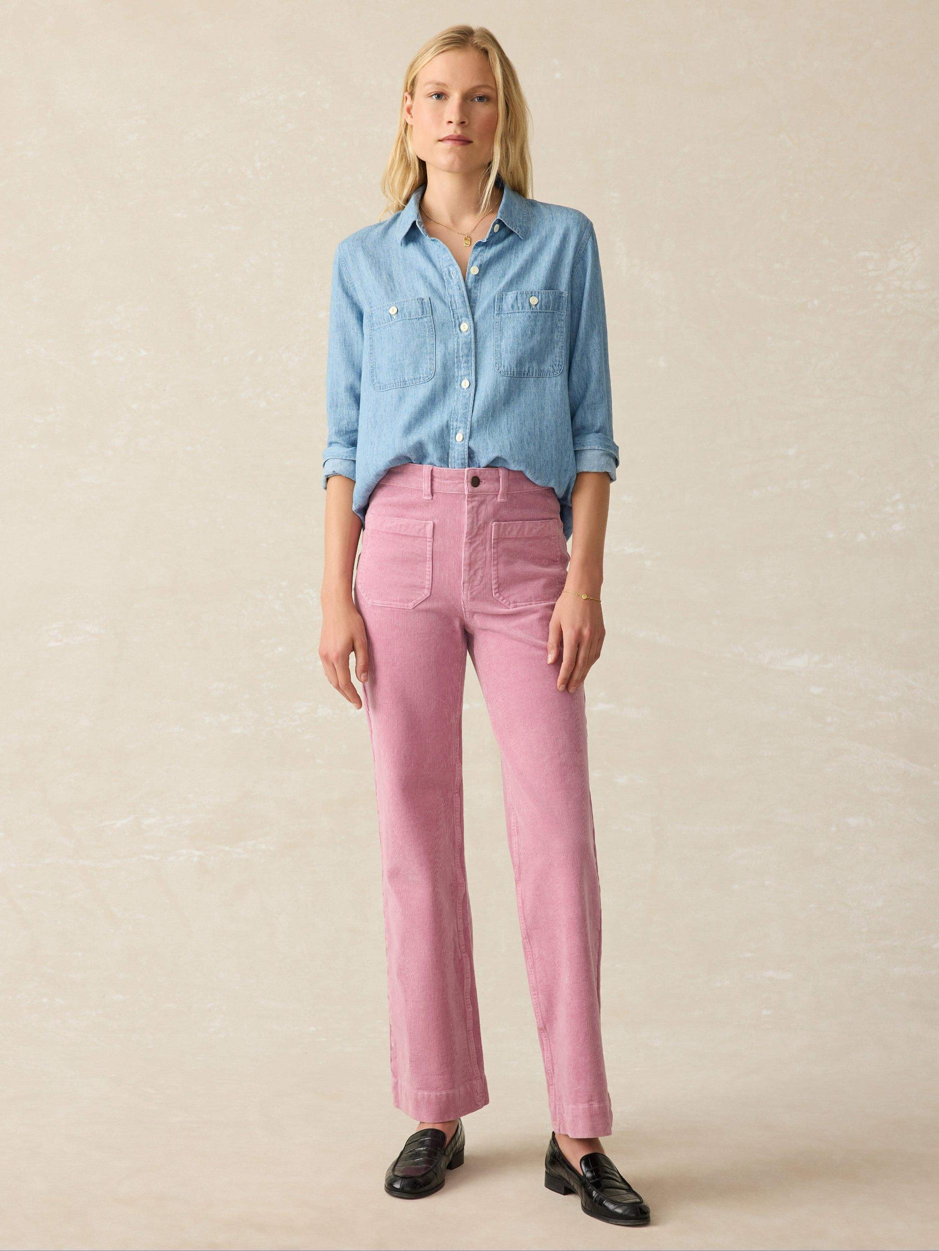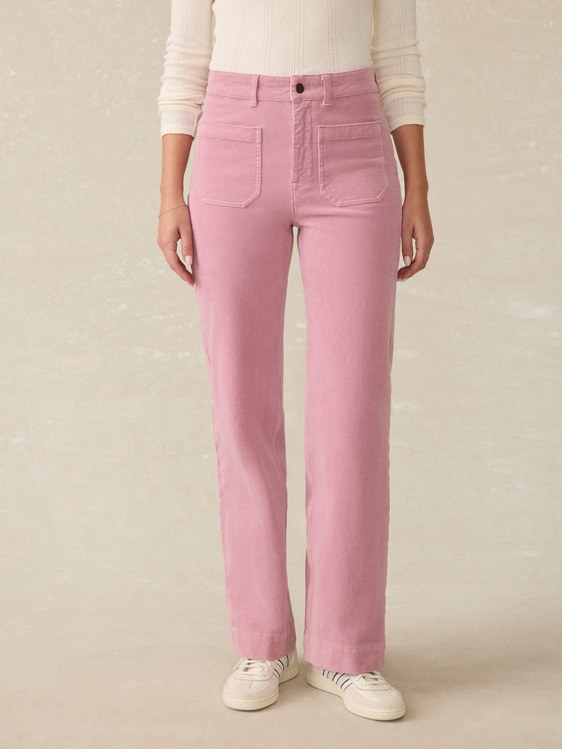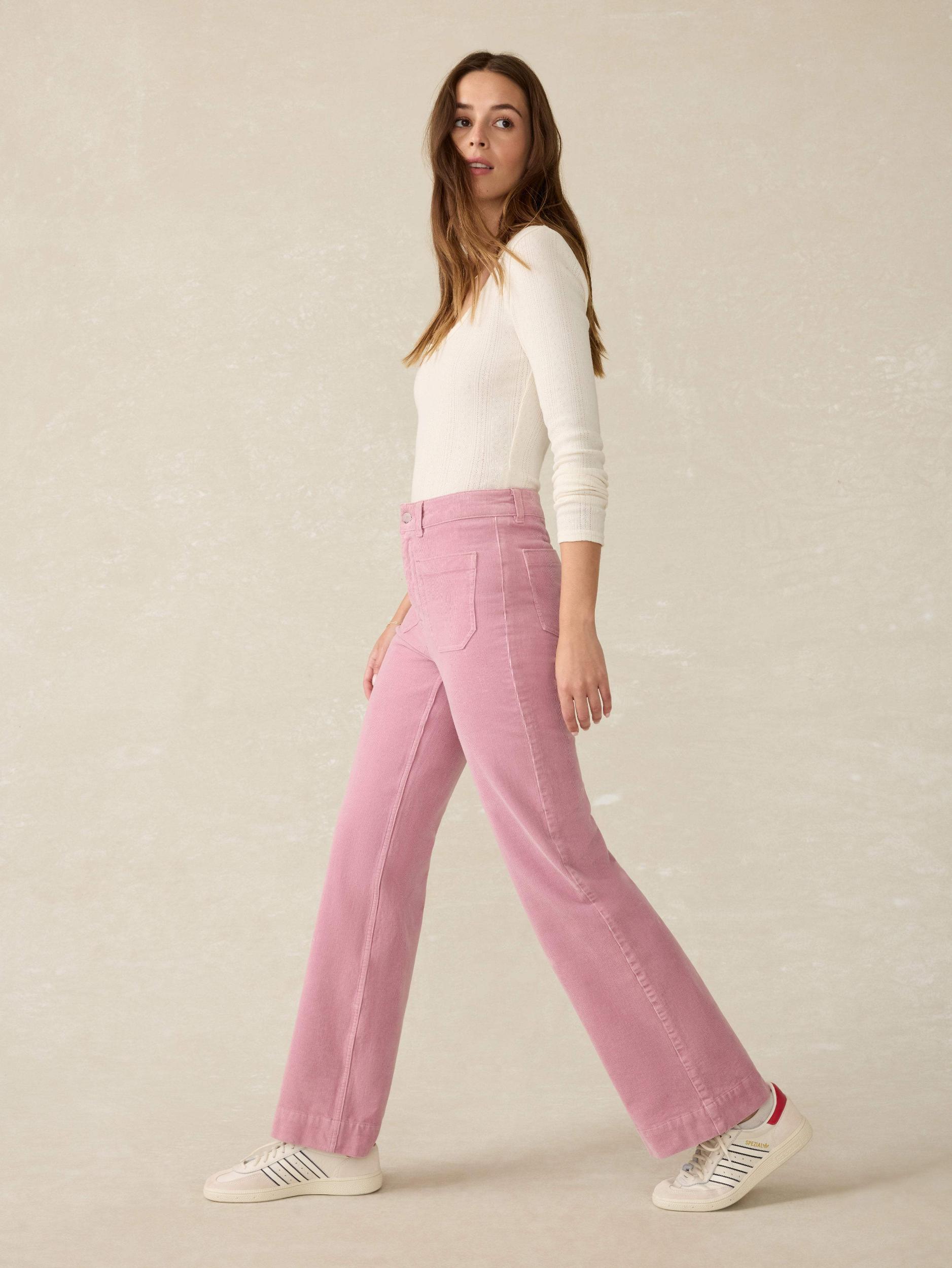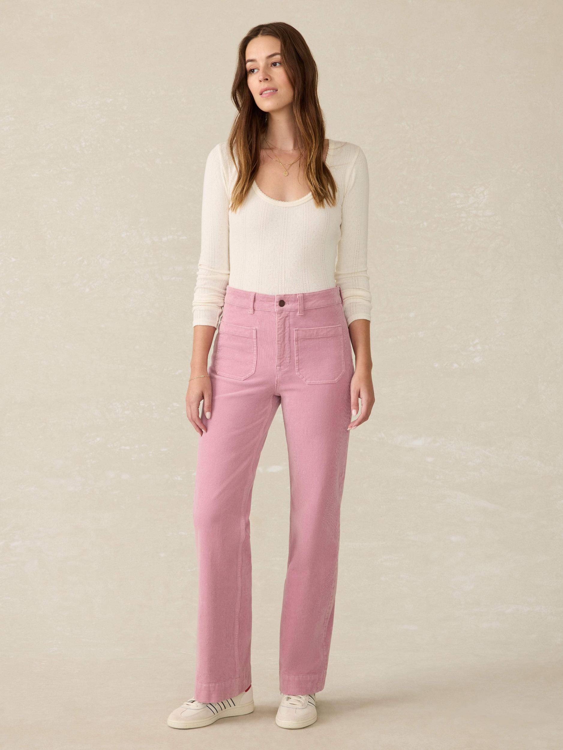 These high-rise pants feature front patch pockets and a flattering flared leg, channeling a chic, laidback retro attitude. But it's our stretch cord fabric that will make these your cooler weather staples. Buttery soft with flexible 4-way stretch, they're endlessly comfortable and perfect for teaming with a crisp button-down for workdays or your fave chunky sweater for laid-back weekend. Fit: Slim through hip and upper thigh, with wide leg. Inseam 32" Detail: Slim wide leg pants with patched front and back pockets. 4 way stretch corduroy. Garment dyed Material: 97% Organic Cotton, 3% Elastane Model: Zoe is 5’10 wearing size 26 Care: Close all fastening before wash. Turn inside out. Machine wash cold with like colors WBF2452-ORZ