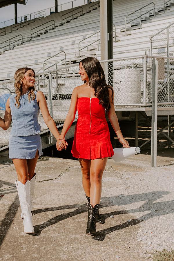- Step into effortlessly trendy style with this corduroy romper dress! The chic zippered front adds a touch of edge, while the pleated detailing on the skirt keeps it flirty and feminine. Perfect for a day out or a casual evening, this romper dress gives you that cute-meets-cool vibe. - Corduroy material - A strapless neckline with an interior non-slip strip - A zippered front ending below the waistline - Belt loops - Functional side pockets - Soft built-in shorts - A flattering silhouette that ends in a pleated upper thigh length hemline