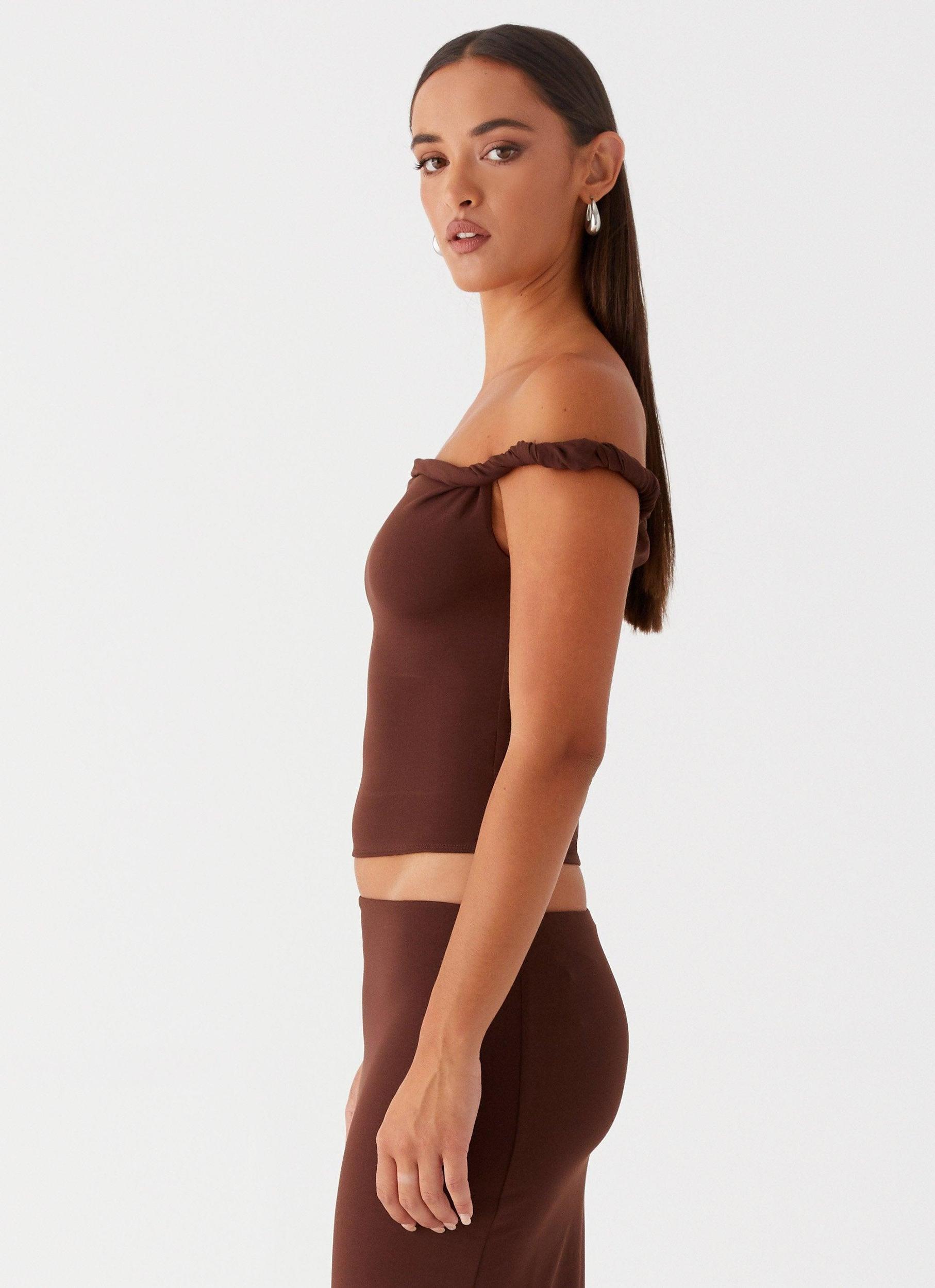 Peppermayo Exclusive Elevate your evening look with the Solace Soul Twist Shoulder Top. With its twisted sleeves and off-shoulder design, this top exudes effortless elegance. Crafted from stretch jersey material, it's your go-to piece for golden hour glamour and beyond. - Midi Length- Twisted Sleeves- Off Shoulder- Stretch Jersey Material- Fully Lined- 95% Polyester, 5% Spandex Size AU 8 / US 4 garment measurements: Bust: 74 cm / 29.1 inWaist: 60 cm / 23.6 inHem: 62 cm / 24.4 inLength: 39 cm / 15.4 in Roberta is 177cm and wears size AU 6 / size US 2