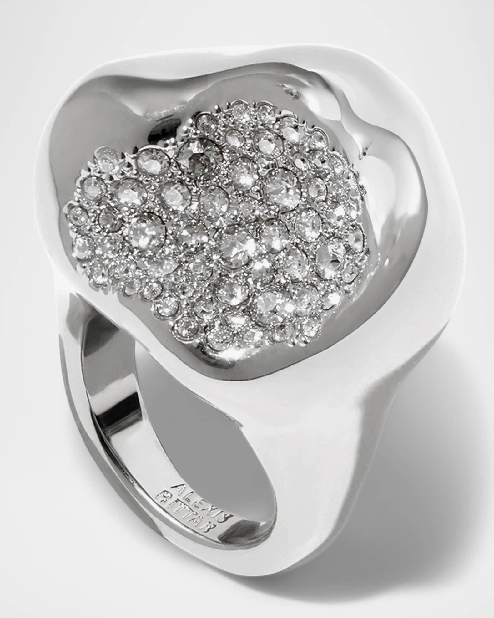 Alexis Bittar cocktail ring Rhodium-tone or gold-tone brass Swarovski® crystals Wipe clean Imported To clean your jewelry, wipe with a soft untreated cloth and store separately to preserve colors and avoid scratches.