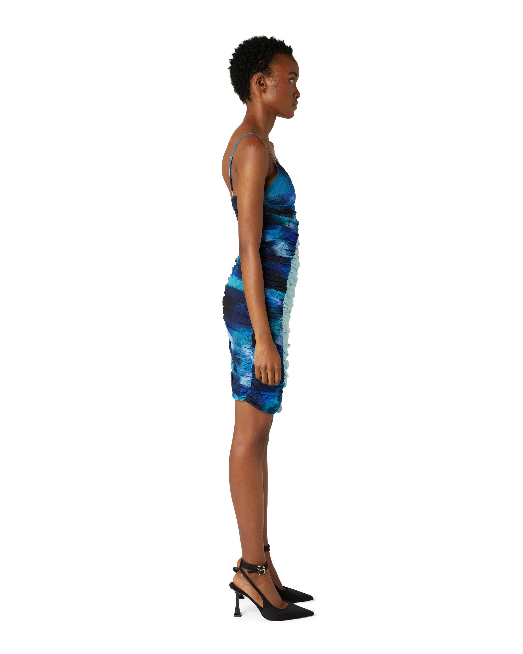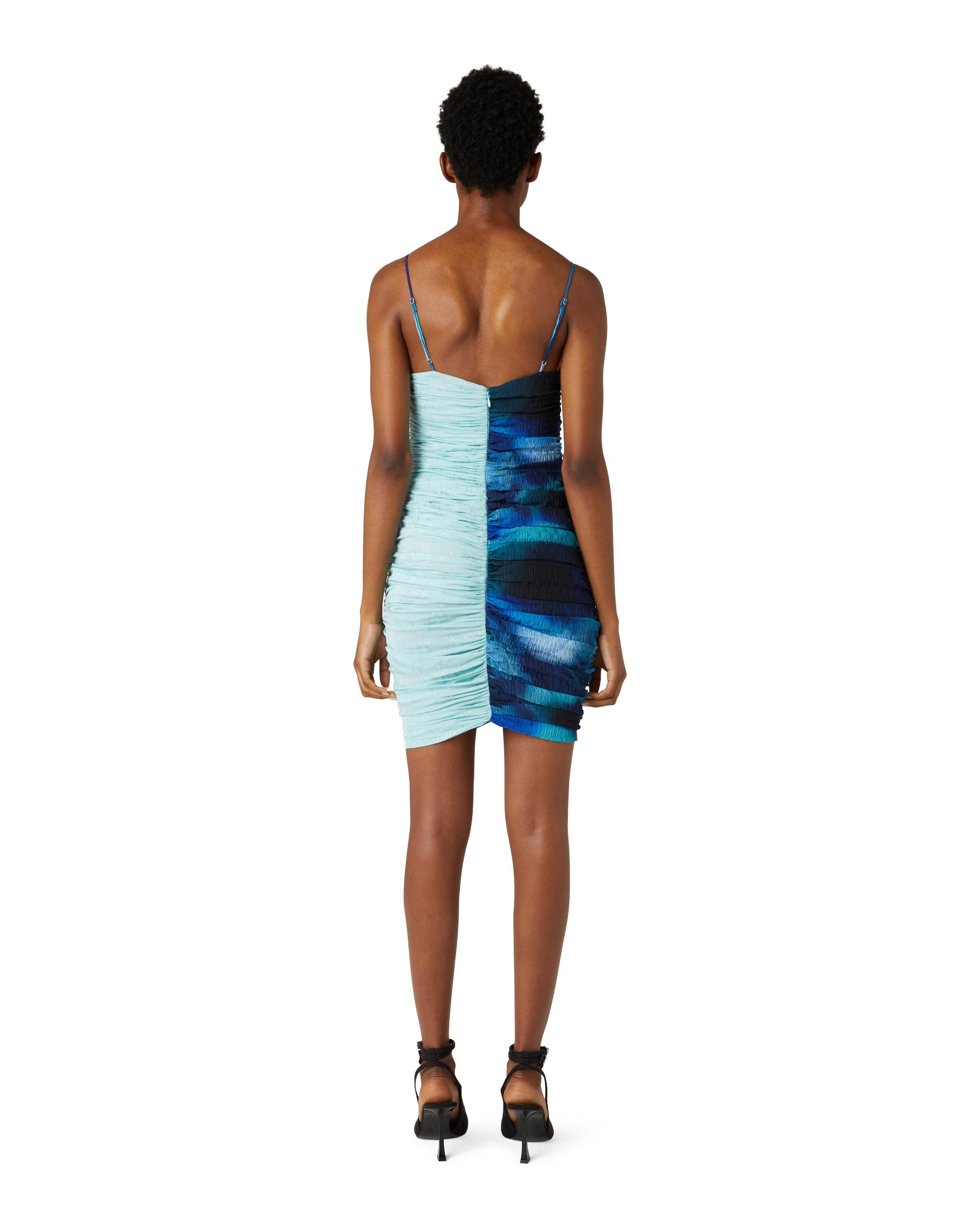 Description: Ahluwalia offers its statement patchwork technique in this Solange Ruched Dress. A sweetheart neckline is framed by adjustable straps; distinct seam lines and ruching on the front and back are finished with French seams throughout. Sizing: Click here for size guide. Model wears size 6. Height: 178 cm / 5'10" For further sizing assistance please contact us on