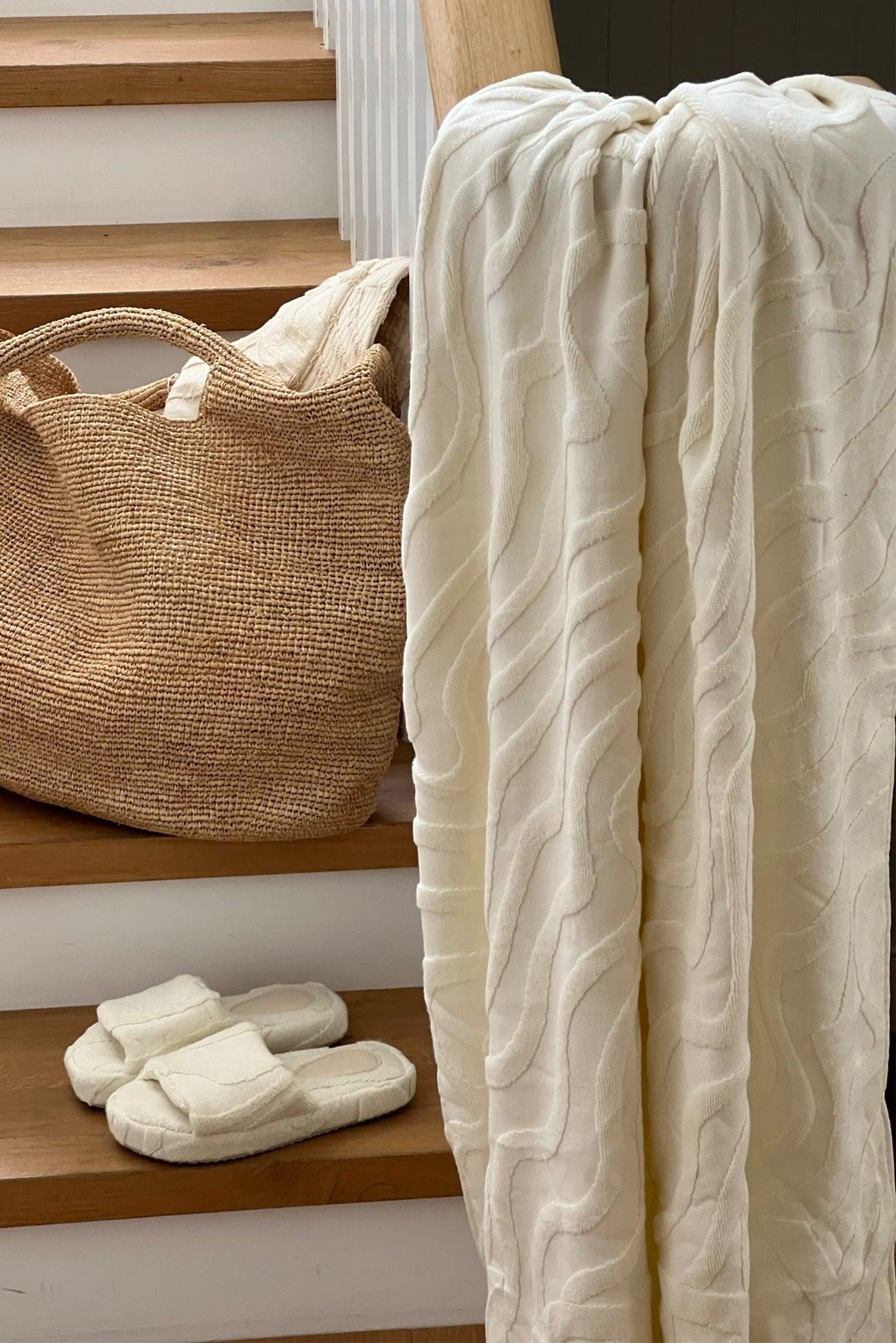 Slide into comfort The Sole Beach House Slides are the perfect post-sun essential to keep you comfortable after a day with your toes in the sand. *Recommended for indoors only.Features:Jacquard wave terry designComfort plush strap"Rubber" like sole Tonal leather "Monday" logo foot pad