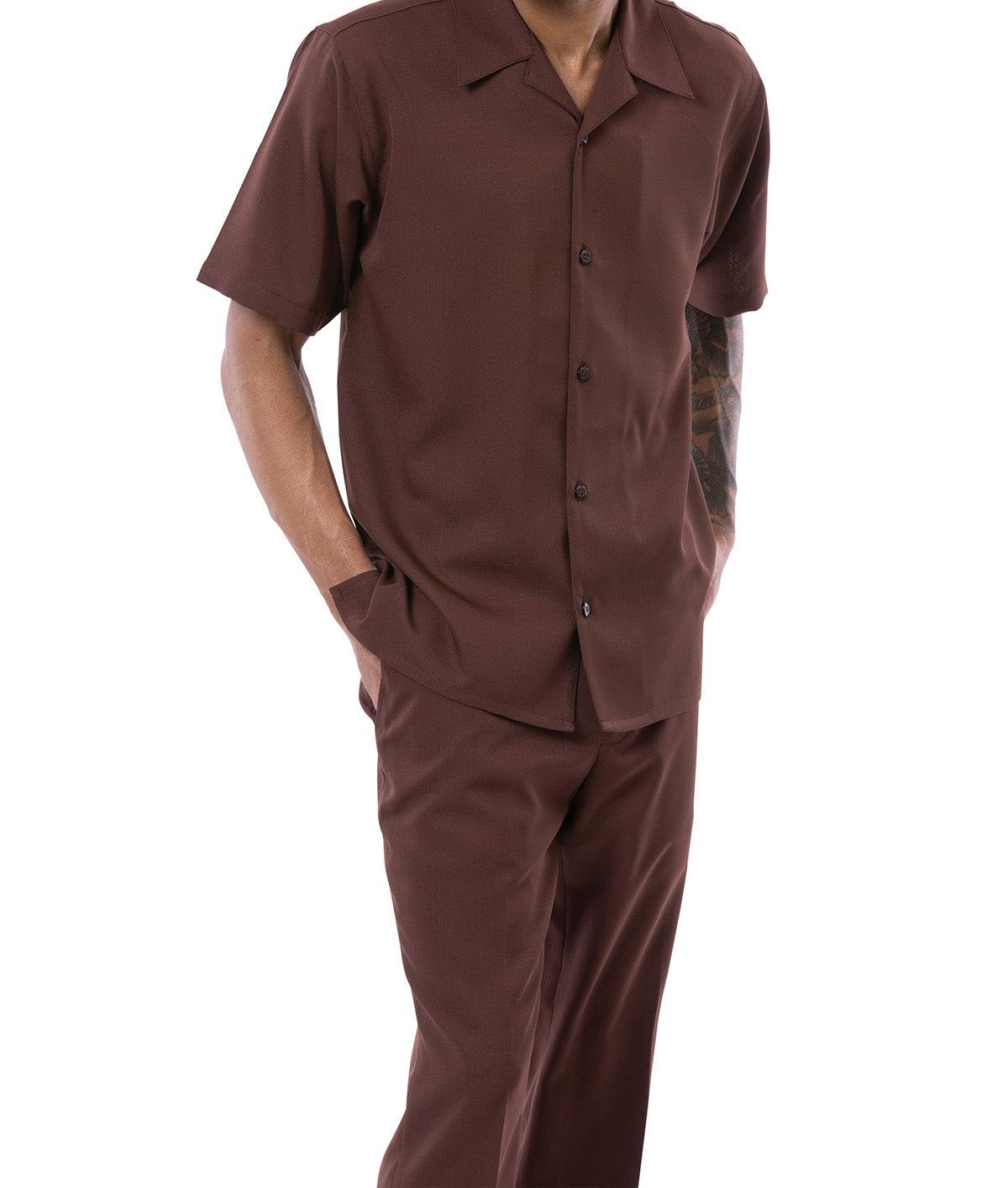 Solid Brown Walking Suit 2 Piece Short Sleeve Set