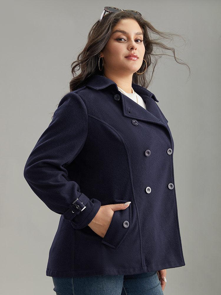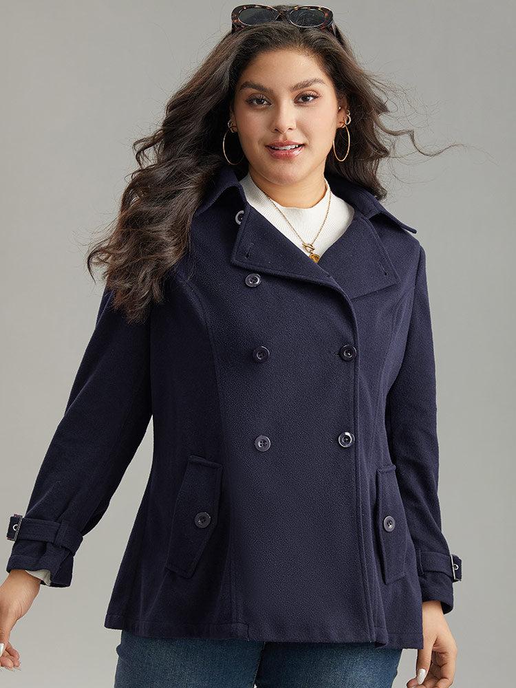 Shop Solid Buckle Detail Cuffs Lapel Collar Coat now and redefine your style with confidence at BloomChic. Tailored for mid and plus-size women. This trendy Outerwear Women, sizes 10-30. Season:Winter;Color:Midnight;Pattern Type:Plain;Details:Pocket, Button, Plain;Pocket:It is perfectly sized to carry a phone.;Belt:No-belt;Closure Type:Button;Lining:No-lining