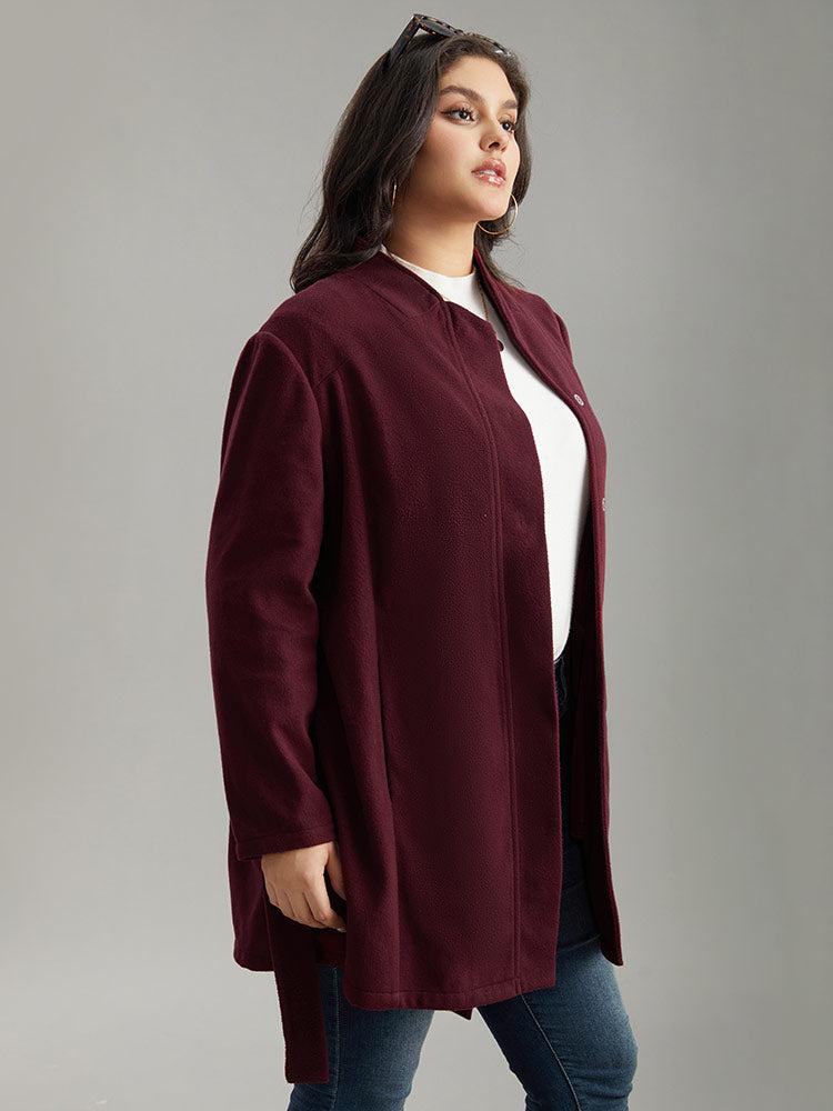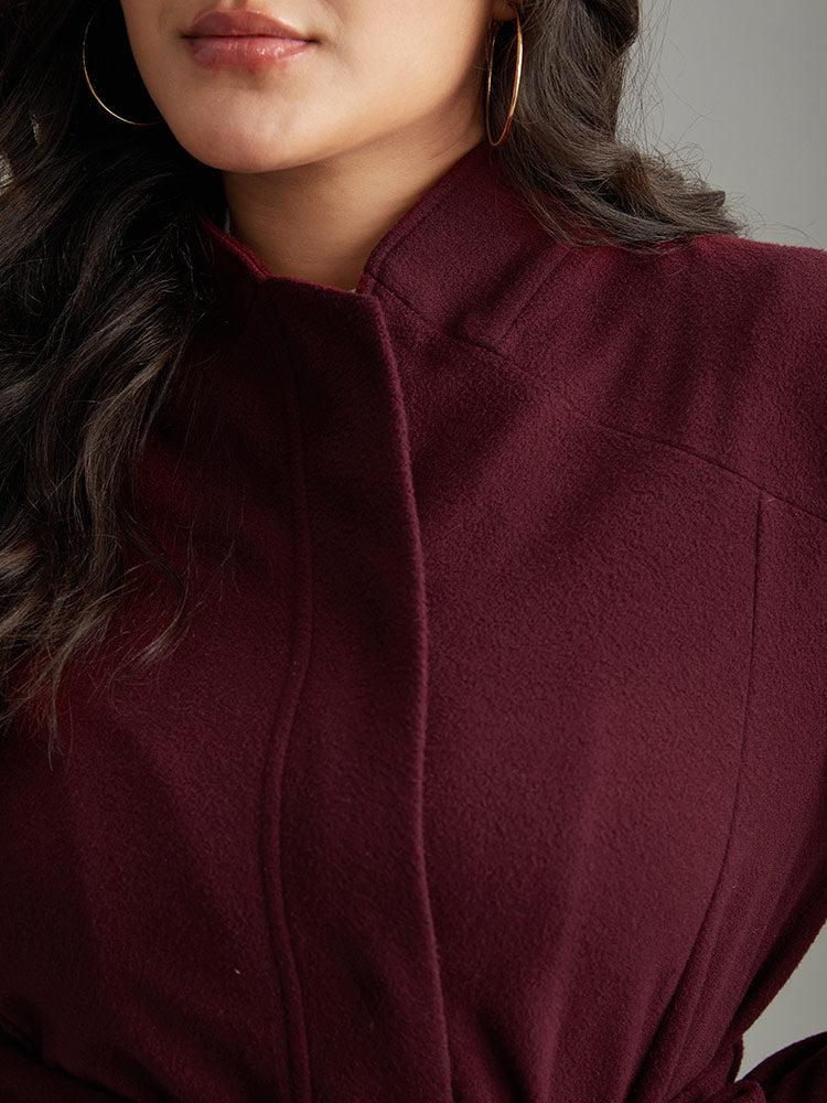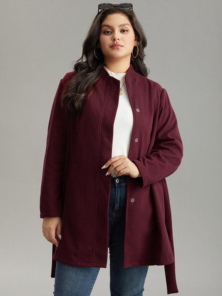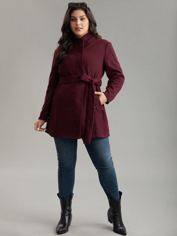 Shop Solid Button Fly Stand Collar Belted Pocket Coat now and redefine your style with confidence at BloomChic. Tailored for mid and plus-size women. This trendy Outerwear Women, sizes 10-30. Season:Fall;Color:Burgundy;Details:Button, Belted, Plain, Knotted, Pocket;Pocket:It is perfectly sized to carry a phone.;Belt:No-belt;Closure Type:Button;Lining:No-lining