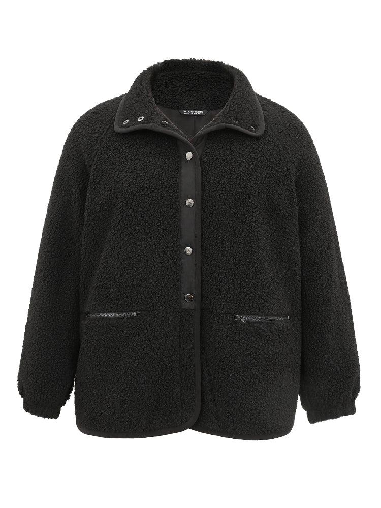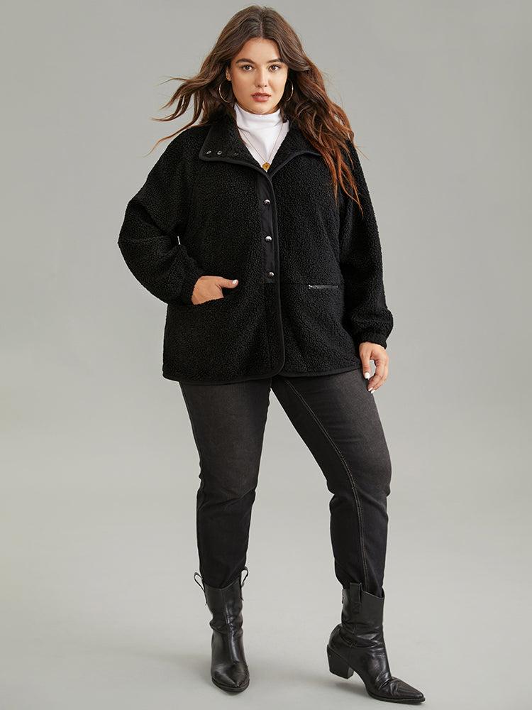 Shop Solid Button Through Teddy Coat now and redefine your style with confidence at BloomChic. Tailored for mid and plus-size women. This trendy Outerwear Women, sizes 10-30. Season:Winter;Color:Black;Style:Casual;Pattern Type:Plain;Details:Pocket, Button, Plain, Lined;Pocket:It is perfectly sized to carry a phone.;Belt:No-belt;Closure Type:Button;Lining:Lining