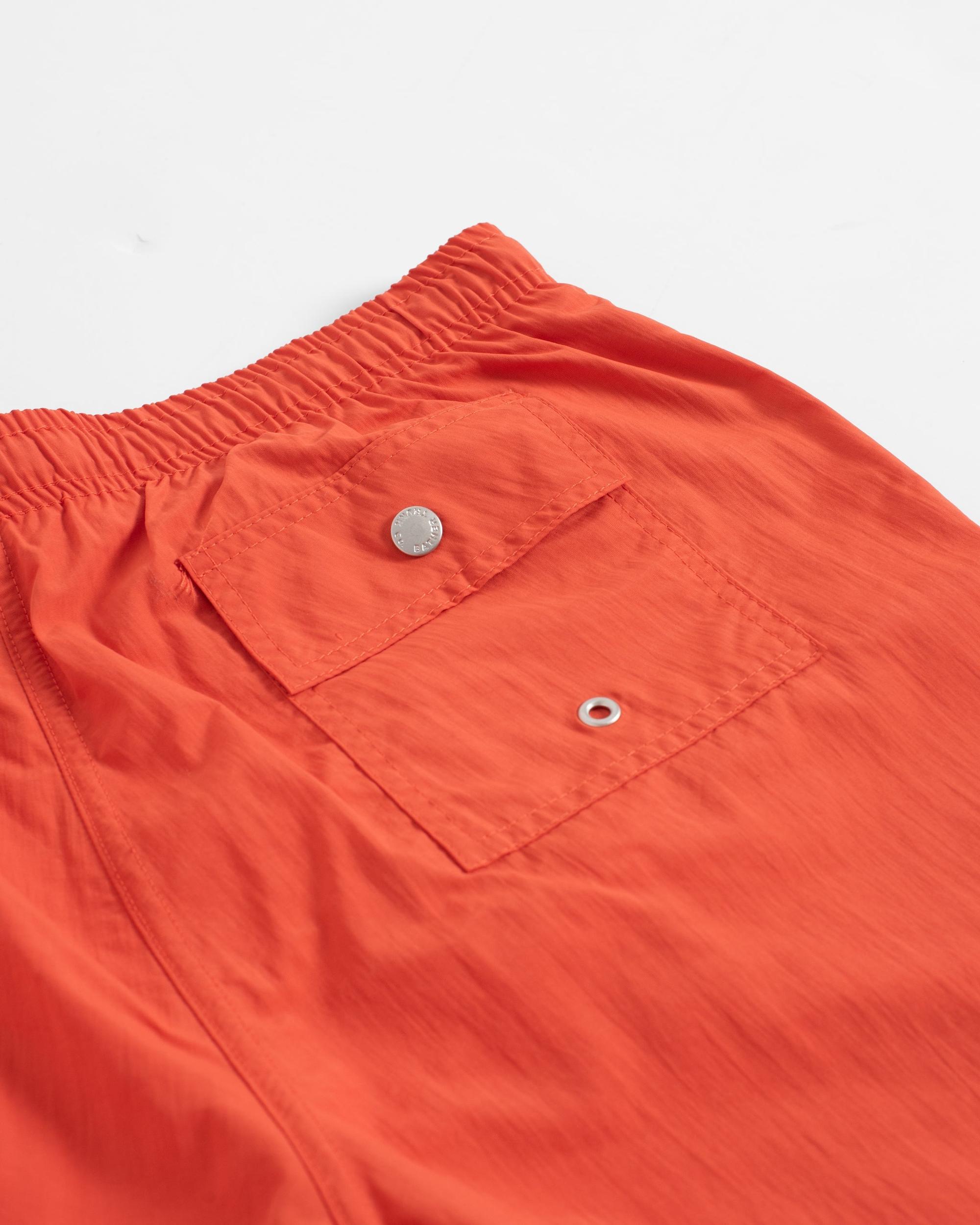 The signature Swim Trunk cut features an elasticized waist with an ultra fine four-way stretch mesh lining, quick-dry shell, custom-tipped drawstrings and back pocket snap enclosure. Fits true to size.