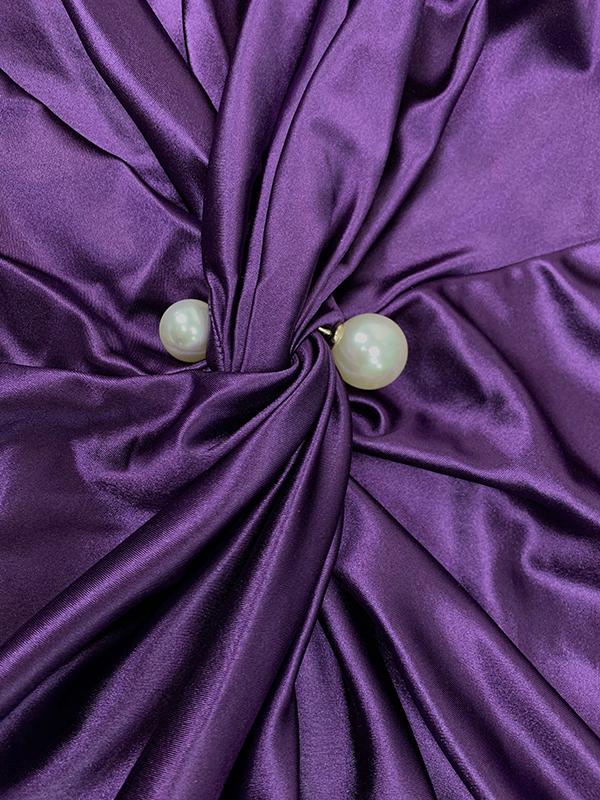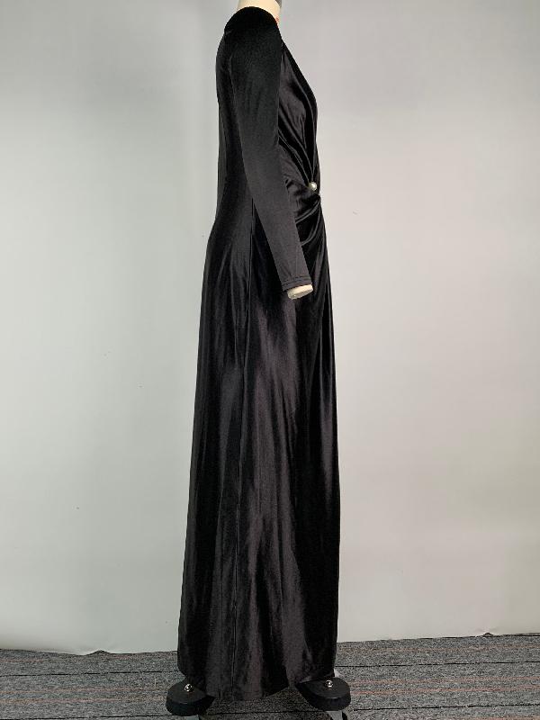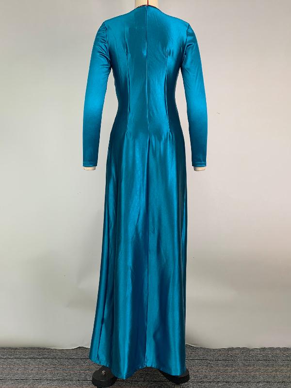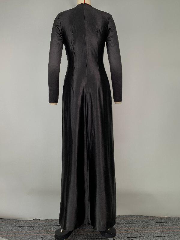 Embrace elegance in our solid color bodycon maxi dresses, featuring pleated long sleeves and a split-front tied waist detail. With a captivating deep V-neck, these dresses blend style and allure seamlessly. Perfect for formal occasions or evening events, they redefine sophistication with every wear.