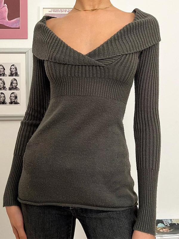 Solid Color Lapel Long Sleeve Knits