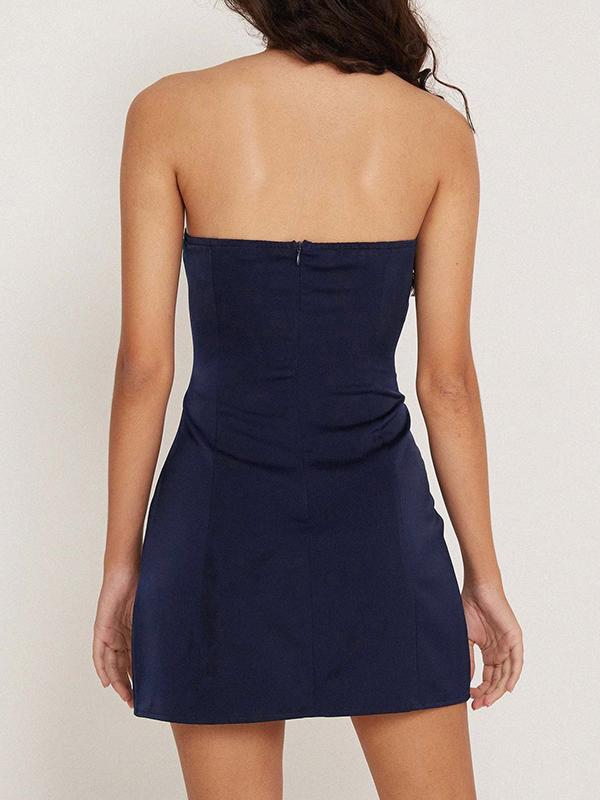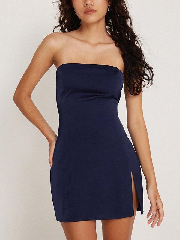 Solid Color Off Shoulder Slit Slim Mini Dress