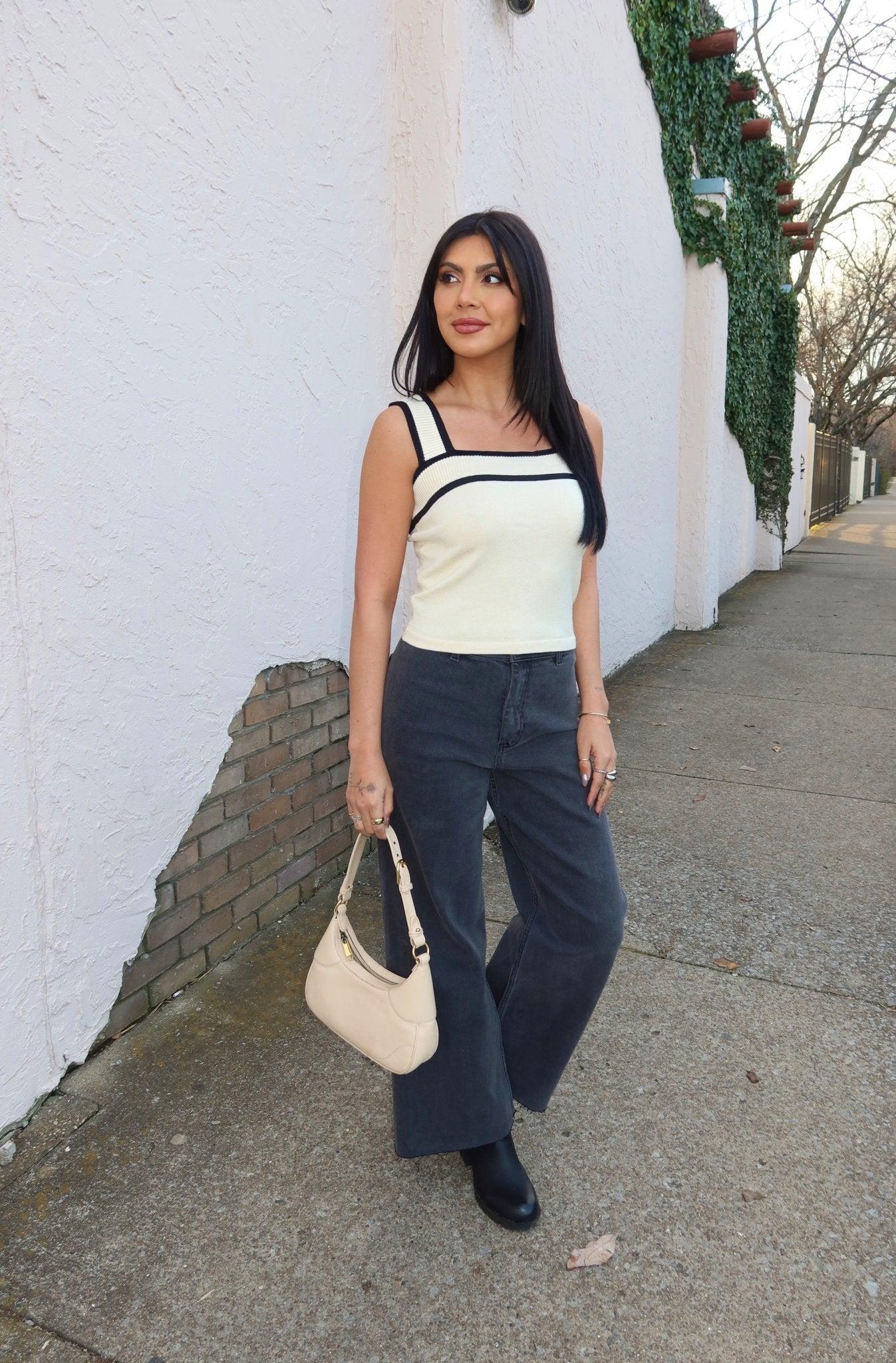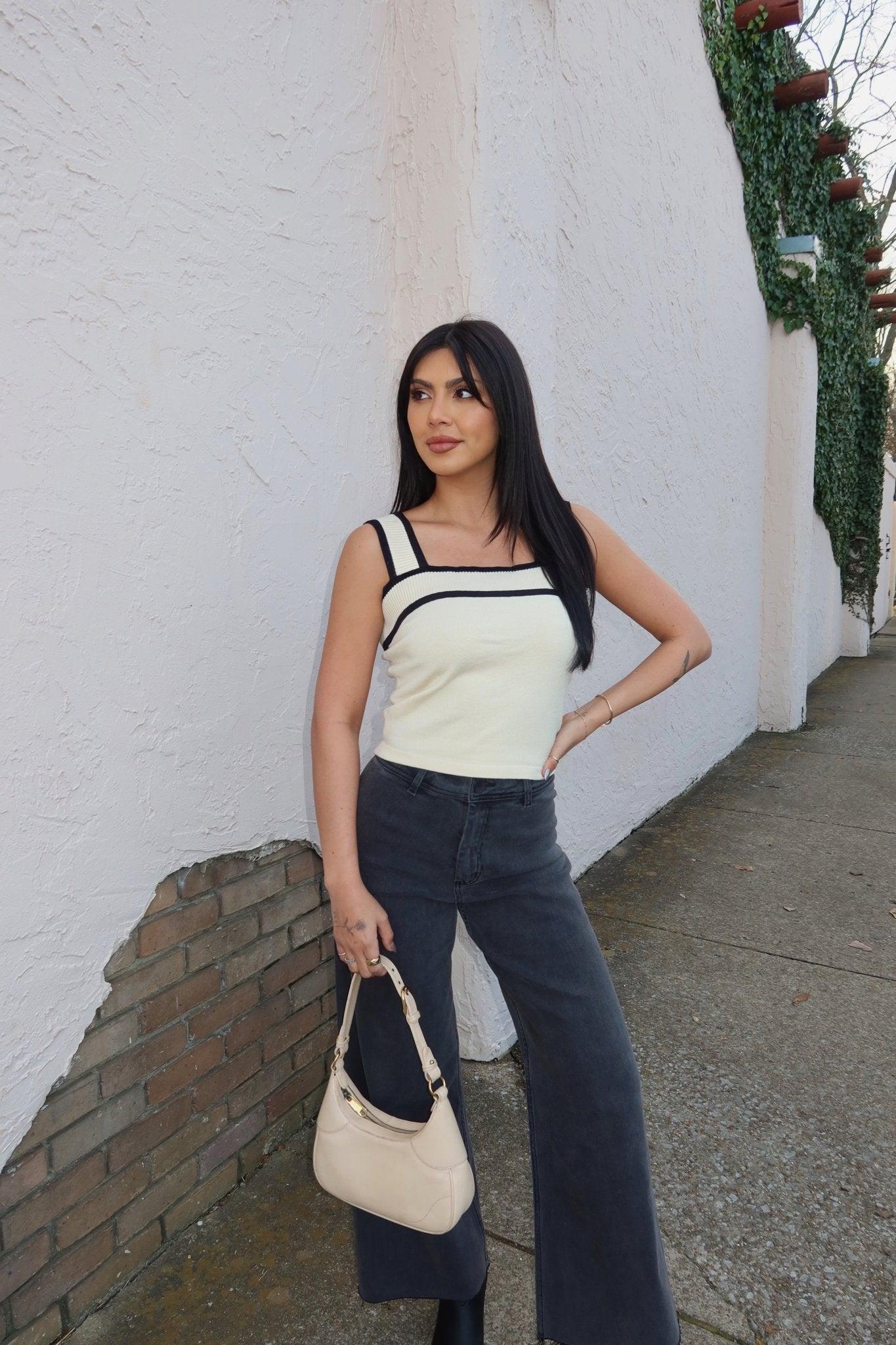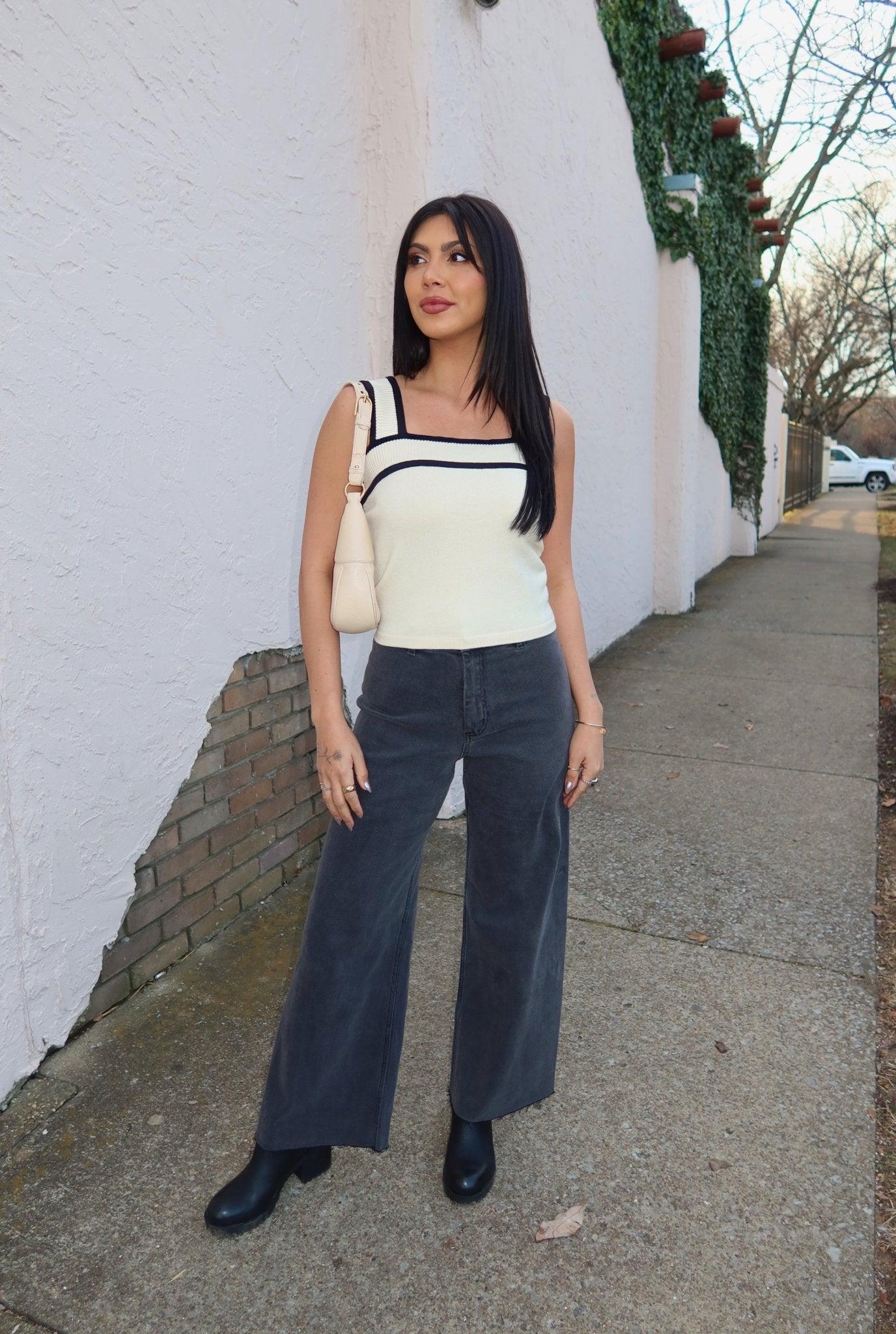 Elevate your wardrobe essentials with the Solid Cream Black Trim Sweater Tank Top! Featuring a sleeveless design and a chic square neckline, this top is both versatile and stylish. The ribbed sweater material offers a comfortable fit with a touch of texture, while the bold contrast trim adds a modern, eye-catching detail. It’s soft, stretchy, and perfect for layering or wearing on its own. Pair it with jeans, skirts, or trousers for effortless everyday style!